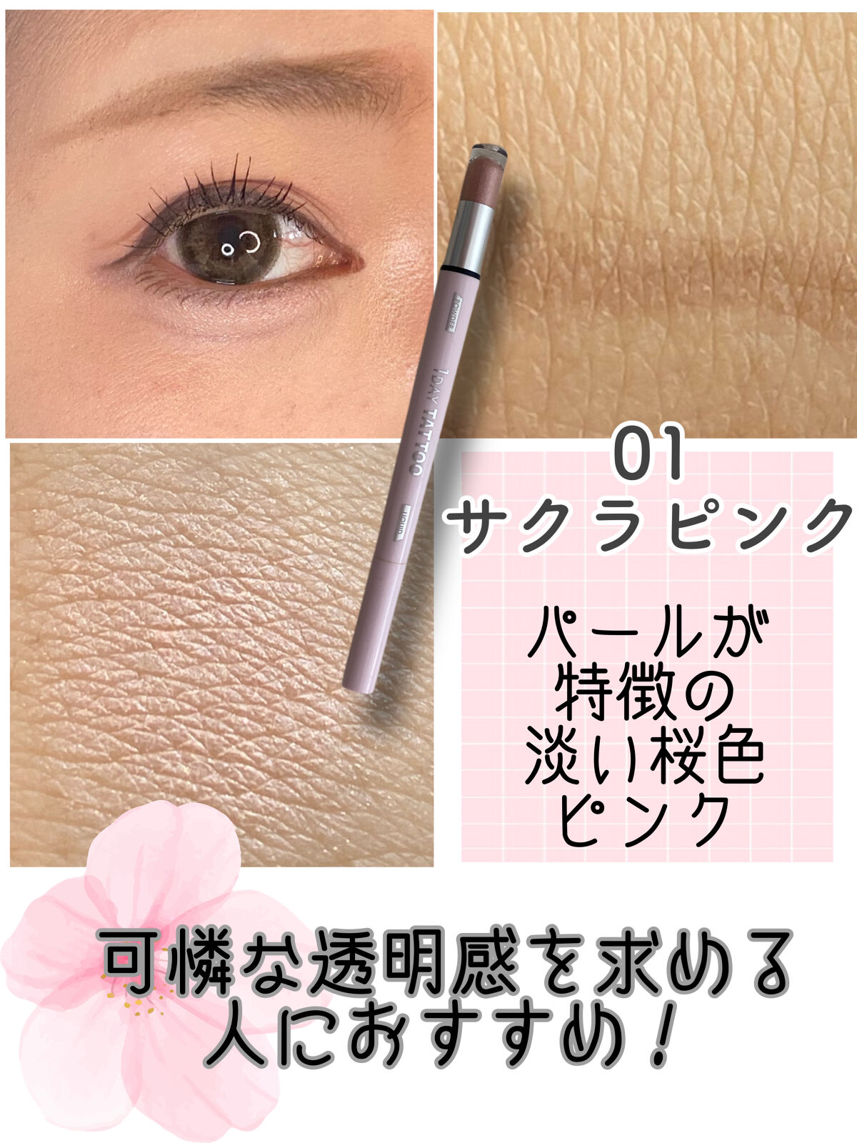 - <コンセプト> ぱっと花ひらくように咲かせよう、わたしの瞳 ~大きな瞳の小さな秘密~ <商品特徴>マルチに使えるパウダー&リキッド ●パウダー ①高輝度パールを贅沢に配合 01、02⇒8種のツヤパールin 03、04⇒13種のガラスパール&ツヤパールin ②独自のシルキーフィット処方 ・軽くのび広がり、ムラなく塗布しやすい ・密着力が高く、粉飛びが少ない ・ウォータープルーフ処方で汗、皮脂、水に強い ③7種の美容保湿成分を配合 ヒアルロン酸Na、水溶性コラーゲン、ローヤルゼリーエキス、ラベンダー花エキス、カミツレ花エキス、リンゴ果実エキス、トレハロース ●リキッド ①影をこっそり仕込む極細ショート筆 ・筆先が短く、しなりにくいから、ブレずに描きやすい ②マルチな使い方ができる ・涙袋の影、ふたえライン、まつ毛のキワ、切開ライン、ノーズシャドウ、人中短縮メイクなど使い方は無限大! ③ウォータープルーフ処方で汗、皮脂、水に強い ④あなた色の影になる3/5発色 ・肌と一体化するように、ぼかした自然な発色でこっそりと影を仕込むことができる。