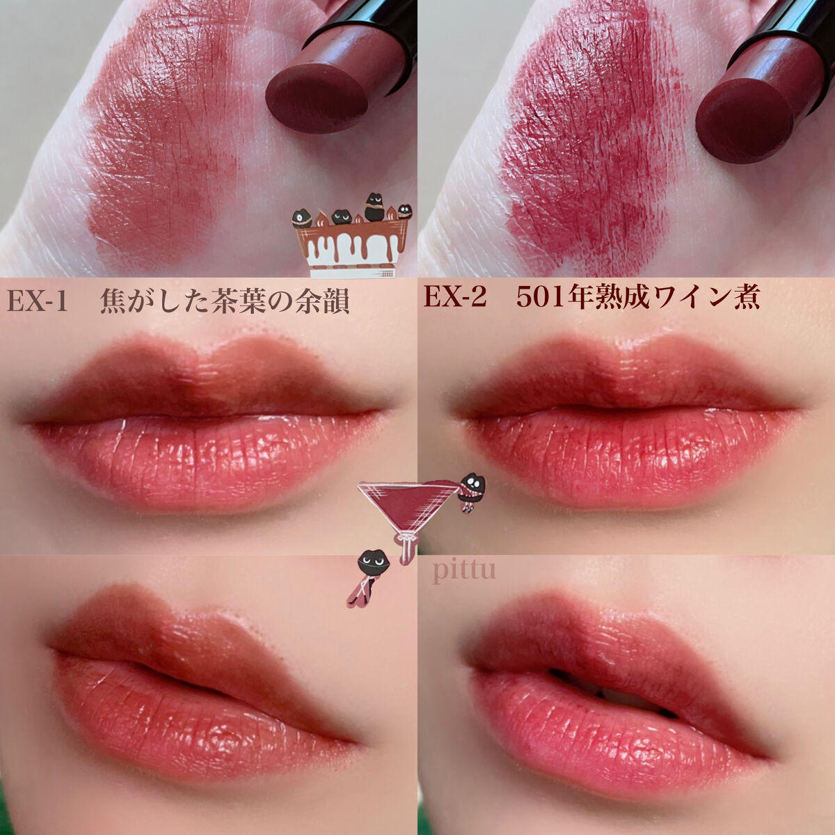 - <01 欲望の塊> テトライソステアリン酸ジペンタエリスリチル、トリ(カプリル酸/カプリン酸)グリセリル、オクチルドデカノール、ラウロイルグルタミン酸ジ(フィトステリル/オクチルドデシル)、ビスアルキル(C16-18)グリセリルウンデシルジメチコン、イソノナン酸イソトリデシル、水添ポリイソブテン、ラウロイルグルタミン酸ジ(オクチルドデシル/フィトステリル/ベヘニル)、パラフィン、合成ワックス、ダイマージリノール酸(フィトステリル/イソステアリル/セチル/ステアリル/ベヘニル)、マイクロクリスタリンワックス、水添マイクロクリスタリンワックス、ヒドロキシステアリン酸エチルヘキシル、トコフェロール、ホホバ種子油、オリーブ果実油、アーモンド油、(エチレン/プロピレン)コポリマー、ポリエチレン、ジメチコン、(+/-)(チタン/酸化チタン)焼結物、マイカ、ラウロイルアスパラギン酸Na、ラウロイルリシン、塩化亜鉛、酸化チタン、酸化鉄、水酸化Al、硫酸Ba、トリイソステアリン酸イソプロピルチタン、酸化スズ、ホウケイ酸(Ca/Al)、合成フルオロフロゴパイト、黄4、黄5、赤104(1)、赤201、赤202 <02 ピンクバナナ> テトライソステアリン酸ジペンタエリスリチル、トリ(カプリル酸/カプリン酸)グリセリル、オクチルドデカノール、ラウロイルグルタミン酸ジ(フィトステリル/オクチルドデシル)、ビスアルキル(C16-18)グリセリルウンデシルジメチコン、イソノナン酸イソトリデシル、水添ポリイソブテン、ラウロイルグルタミン酸ジ(オクチルドデシル/フィトステリル/ベヘニル)、パラフィン、合成ワックス、ダイマージリノール酸(フィトステリル/イソステアリル/セチル/ステアリル/ベヘニル)、マイクロクリスタリンワックス、水添マイクロクリスタリンワックス、ヒドロキシステアリン酸エチルヘキシル、トコフェロール、ホホバ種子油、オリーブ果実油、アーモンド油、(エチレン/プロピレン)コポリマー、ポリエチレン、ジメチコン、(+/-)(チタン/酸化チタン)焼結物、マイカ、ラウロイルアスパラギン酸Na、ラウロイルリシン、塩化亜鉛、酸化チタン、酸化鉄、水酸化Al、硫酸Ba、トリイソステアリン酸イソプロピルチタン、酸化スズ、ホウケイ酸(Ca/Al)、合成フルオロフロゴパイト、黄4、黄5、赤104(1)、赤201、赤202 <03 陽炎> テトライソステアリン酸ジペンタエリスリチル、トリ(カプリル酸/カプリン酸)グリセリル、オクチルドデカノール、ラウロイルグルタミン酸ジ(フィトステリル/オクチルドデシル)、ビスアルキル(C16-18)グリセリルウンデシルジメチコン、イソノナン酸イソトリデシル、水添ポリイソブテン、ラウロイルグルタミン酸ジ(オクチルドデシル/フィトステリル/ベヘニル)、パラフィン、合成ワックス、ダイマージリノール酸(フィトステリル/イソステアリル/セチル/ステアリル/ベヘニル)、マイクロクリスタリンワックス、水添マイクロクリスタリンワックス、ヒドロキシステアリン酸エチルヘキシル、トコフェロール、ホホバ種子油、オリーブ果実油、アーモンド油、(エチレン/プロピレン)コポリマー、ポリエチレン、ジメチコン、(+/-)(チタン/酸化チタン)焼結物、マイカ、ラウロイルアスパラギン酸Na、ラウロイルリシン、塩化亜鉛、酸化チタン、酸化鉄、水酸化Al、硫酸Ba、トリイソステアリン酸イソプロピルチタン、酸化スズ、ホウケイ酸(Ca/Al)、合成フルオロフロゴパイト、黄4、黄5、赤104(1)、赤201、赤202 <04 パンプキンワイン> テトライソステアリン酸ジペンタエリスリチル、トリ(カプリル酸/カプリン酸)グリセリル、オクチルドデカノール、ラウロイルグルタミン酸ジ(フィトステリル/オクチルドデシル)、ビスアルキル(C16-18)グリセリルウンデシルジメチコン、イソノナン酸イソトリデシル、水添ポリイソブテン、ラウロイルグルタミン酸ジ(オクチルドデシル/フィトステリル/ベヘニル)、パラフィン、合成ワックス、ダイマージリノール酸(フィトステリル/イソステアリル/セチル/ステアリル/ベヘニル)、マイクロクリスタリンワックス、水添マイクロクリスタリンワックス、ヒドロキシステアリン酸エチルヘキシル、トコフェロール、ホホバ種子油、オリーブ果実油、アーモンド油、(エチレン/プロピレン)コポリマー、ポリエチレン、ジメチコン、(+/-)(チタン/酸化チタン)焼結物、マイカ、ラウロイルアスパラギン酸Na、ラウロイルリシン、塩化亜鉛、酸化チタン、酸化鉄、水酸化Al、硫酸Ba、トリイソステアリン酸イソプロピルチタン、酸化スズ、ホウケイ酸(Ca/Al)、合成フルオロフロゴパイト、黄4、黄5、赤104(1)、赤201、赤202 <05 ダークフィグ> テトライソステアリン酸ジペンタエリスリチル、トリ(カプリル酸/カプリン酸)グリセリル、オクチルドデカノール、ラウロイルグルタミン酸ジ(フィトステリル/オクチルドデシル)、ビスアルキル(C16-18)グリセリルウンデシルジメチコン、イソノナン酸イソトリデシル、水添ポリイソブテン、ラウロイルグルタミン酸ジ(オクチルドデシル/フィトステリル/ベヘニル)、