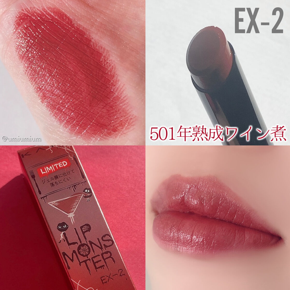 - 落ちにくさも美発色もよくばりたい、つけたての色が長時間持続する人気の口紅リップモンスター。 唇から蒸発する水分を活用して密着ジェル膜に変化する独自技術※で、つけたての色が長時間持続。 高発色&保湿。 ※当社独自の色持ち技術 ■花火のようにまぶしくきらめく 繊細なラメが際立つ限定色 EX-6 ピンクカラー×青ラメ【ロケット花火流星群】 EX-7 オレンジカラー×黄&緑ラメ【100万発の線香花火】 EX-8 レッドカラー×緑ラメ【打ち上げ花火ブランコ】 ■深みレッド系カラーの限定色 EX-9 戦慄の喜笑 (限定色) EX-10 狂気の怒号 (限定色) 【2025クリスマスコフレ】 落ちにくいリップモンスターから、唇の血色感を底上げする ホリデーシーズン限定の熱感ニュアンスベージュ系カラー登場。 EX-11 紅煙宿る贈り物(限定色):ボルドーベージュ系 EX-12 盗まれた1224mの星光(限定色):キャメルベージュ系