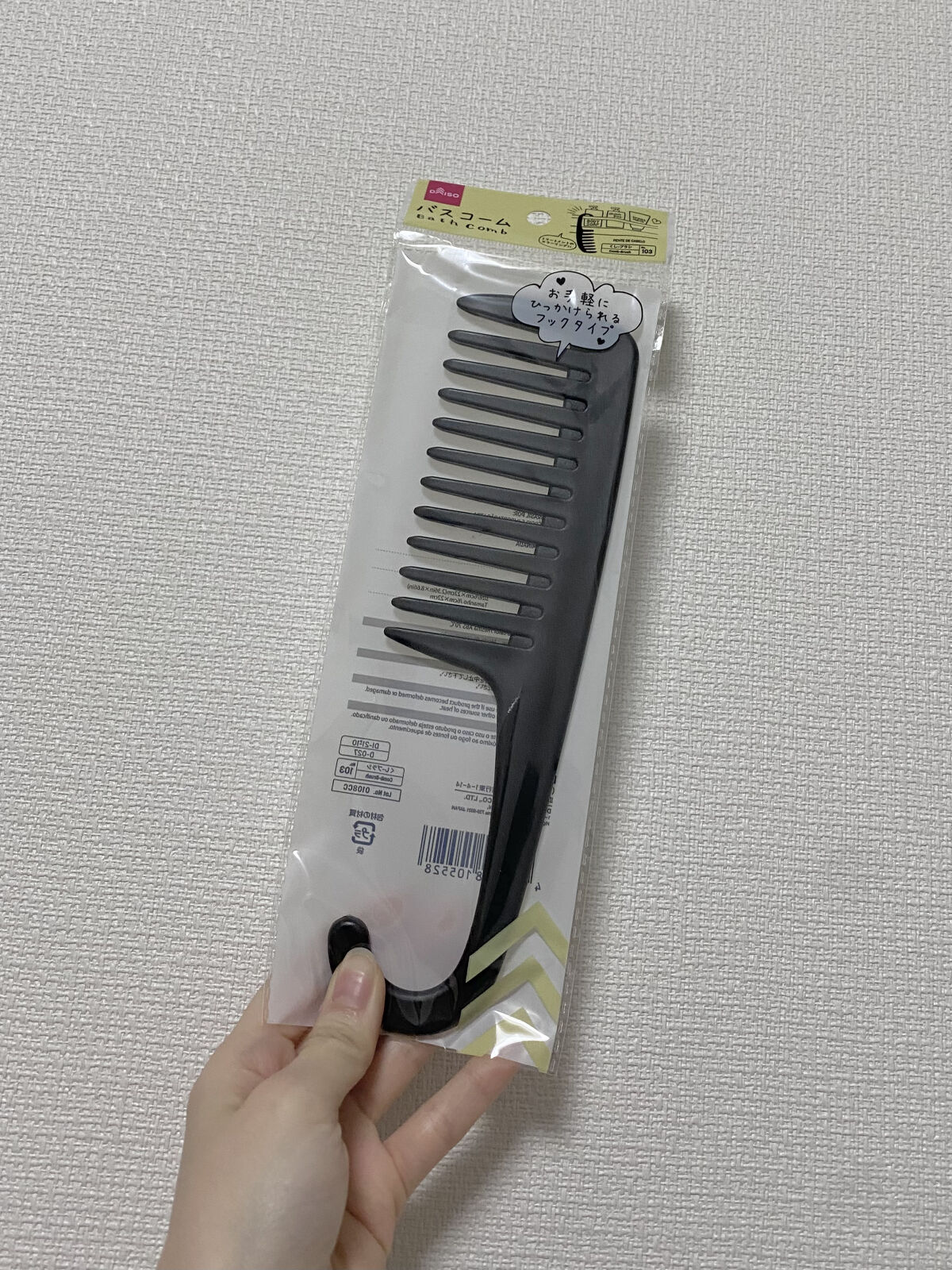 \ぶら下げられるバスコーム🛀/やっとゲットしましたー!DAISOバスコームずーっと近くのDAISOに行ってもなかったので遠出した先のDAISOで見つけました!トリートメントの時にこのコームで梳かすとトリートメントがまんべんなく浸透します𐬦𐬦𐬦...