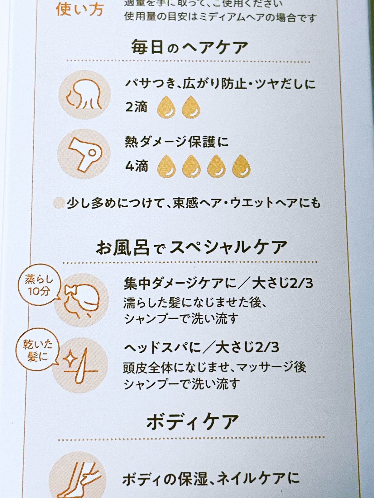 | 重ためなテクスチャーのヘアオイルだけど 仕上がりはまとまるのに軽やか。 | 詳細を見る | |||