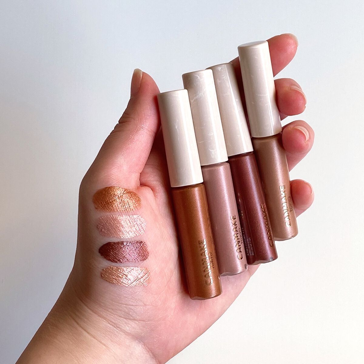 キャンメイクむにゅっとハイライター全色比較繊細なラメがたくさん入った、密着度の高いハイライト‼️01ムーンライトジェム一般的なハイライトカラーホワイトベージュって感じかな?パーソナルカラー関係なく使える!02ローズクォーツピンクハイライト🎀💕...
