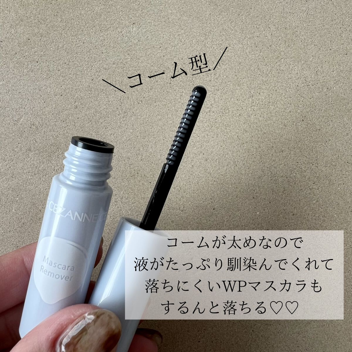 - まつ毛に素早く馴染んで、頑固なウォータープルーフマスカラもするんと落とせます。 セザンヌのウォータープルーフマスカラとフィルムタイプ(お湯オフタイプ)のマスカラ全てに使用できます。 目元のことを考えた液だれしにくい処方。 美容液成分7種(ユズ果実エキス、パンテノール、ビオチノイルトリペプチド-1、ウメ果実エキス、ラウロイルグルタミン酸ジ(フィトステリル/オクチルドデシル)、アカヤジオウ根エキス、トウキンセンカ花エキス)配合。 まつ毛にたっぷり塗れる幅広コームを採用。