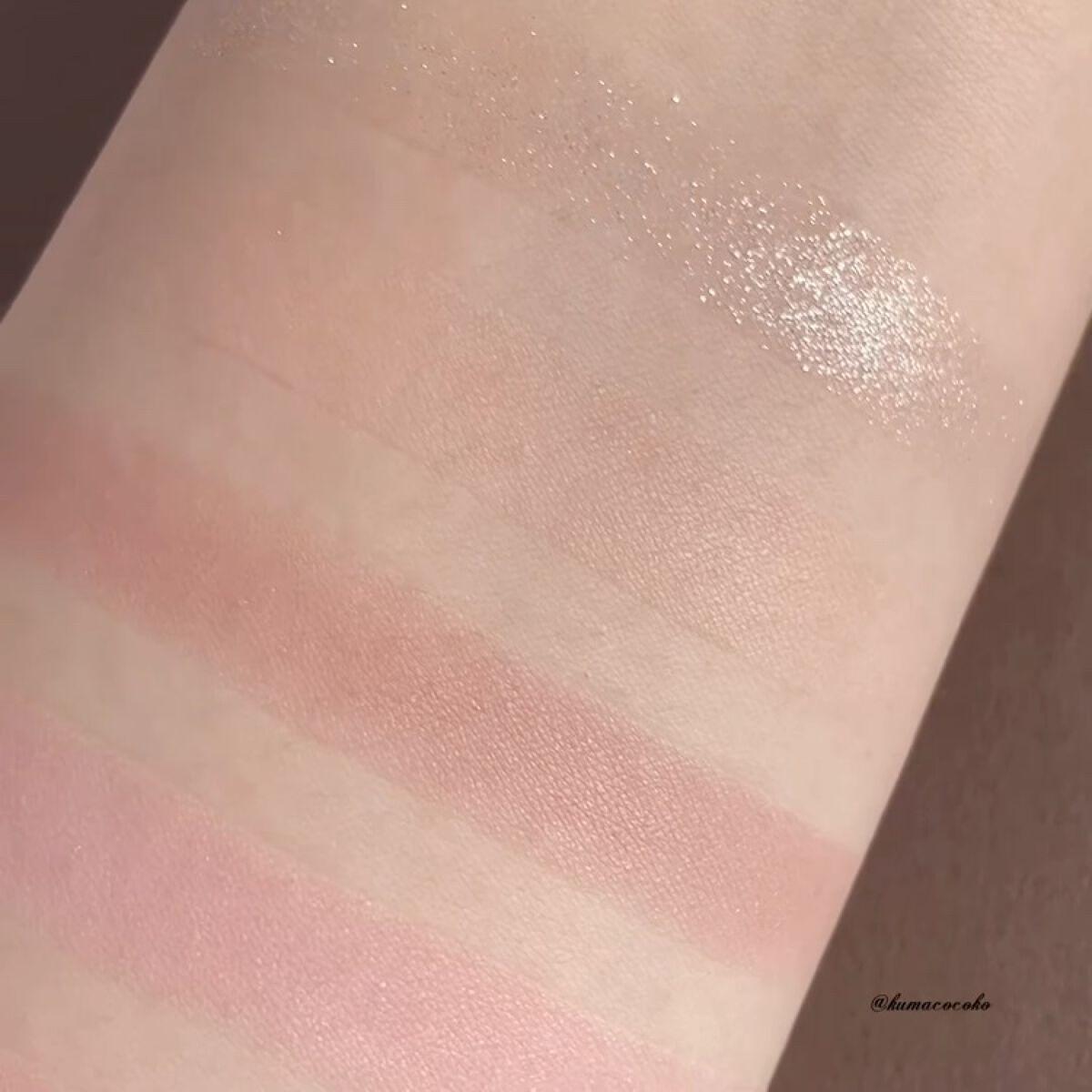 【13 クール ブレンディング】13は想像していたより「くすみ強め・暗め」と感じました。公式画像の淡さはそこまでなかかったから、買うときは「公式画像と実物は印象違うかも」と思っておくと良いかも…?粉質はALLマット。素人目ですが、くすみが得意な方、使いやすいかな?と思っています💭🤍 【16 バイオレットニット】ピンクベージュ〜ブラウン系のパレットです。製品コンセプトのようにまさに冬に使いやすいほっこりした感じ◎正直今は手が伸びない状況ですが、秋冬になったら使いたいです。粉質はマットやグリッター、ラメありなど様々です。 【18 ベリースムージー】個人的にはこの中で1番使いやすいパレットでした◎くすみがなく、青みが強く、明るめで、白みも感じます。(私の得意要素が揃っていた)写真でもわかるように結構しっかり青みピンク系です。18色も揃っているのでかなり楽しめると思います♡こちらも粉質様々です。グリッターもしっとり。いや、ペタッと?していてかなり飛びにくいテクスチャになっています。