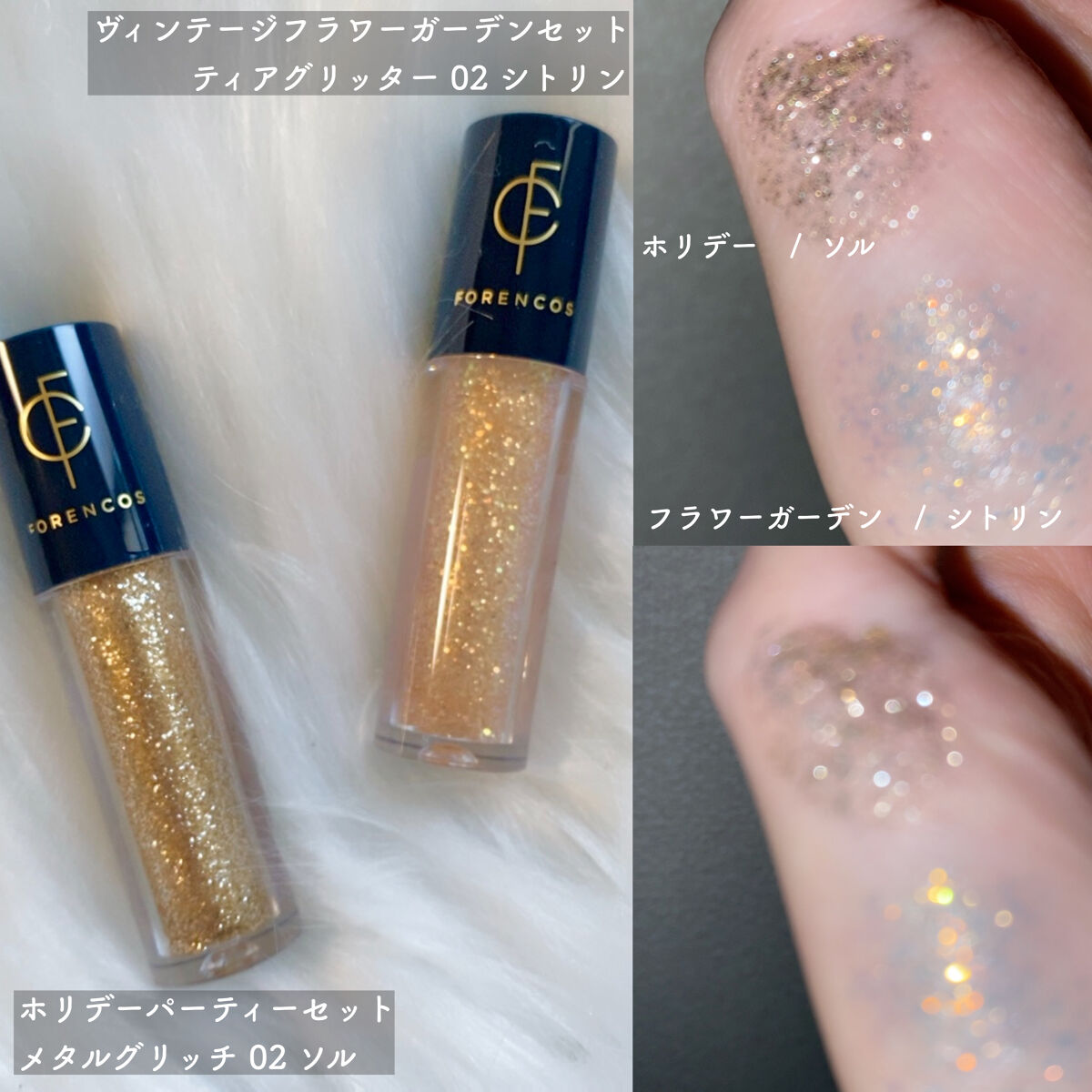 イエローベースにゴールドとシルバーラメがキラキラするグリッターです。イルミネーションに負けないくらいキラキラします! アプリケーターでつけると少しまばらについてしまう印象があります。手に出してブラシとかでピンポイントでつける方がつけたいところに付けられるかなと感じました。 私にはキラキラしすぎるかなという感じです(^^;;