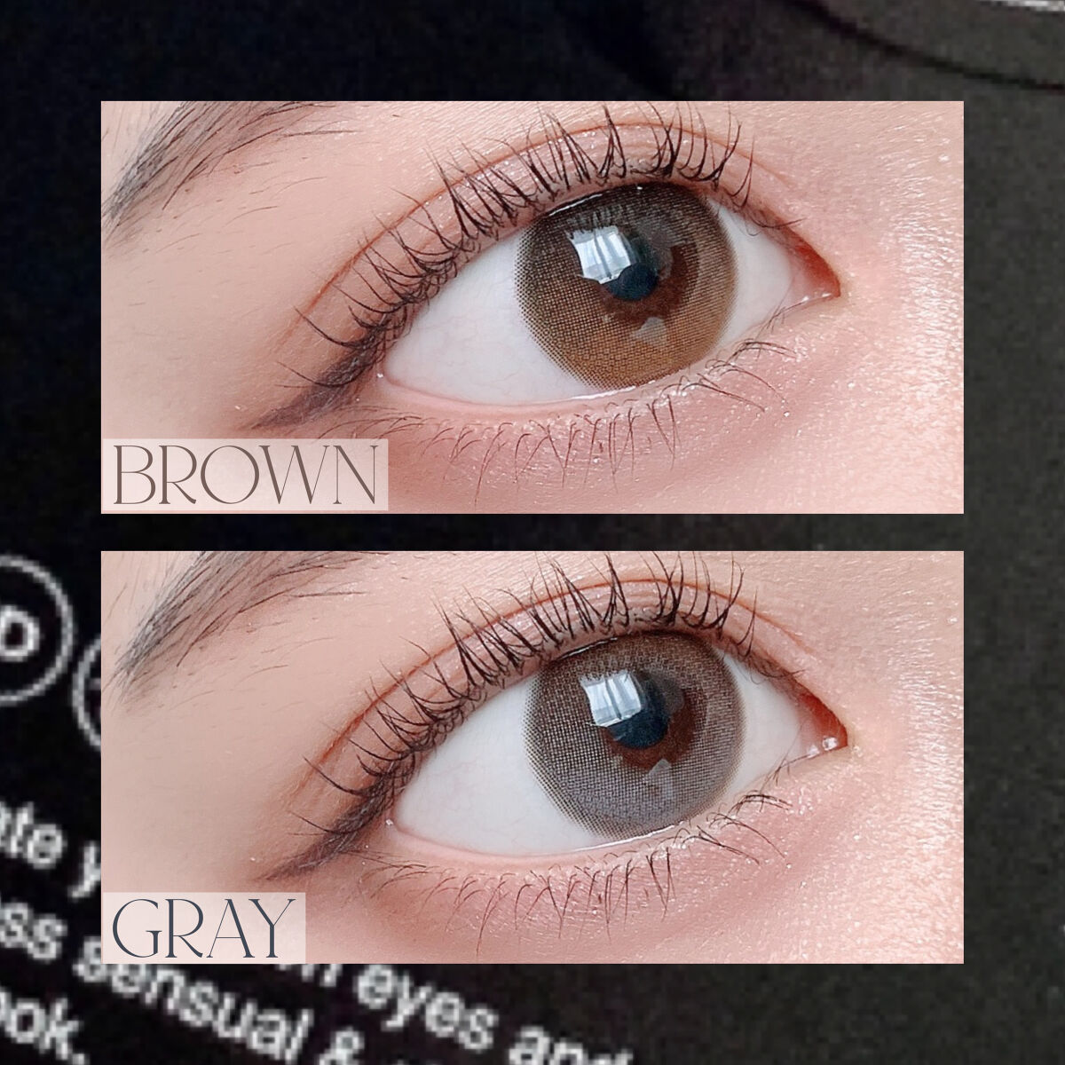 お休みの日はちょっと高発色のカラコンをつけたいです🙋♀️ 2トーンカラコンなんだけど見て!!!グレー×ブラウン珍しくない?🤎🩶 1dayと1monthがあるのも良き🌷✨