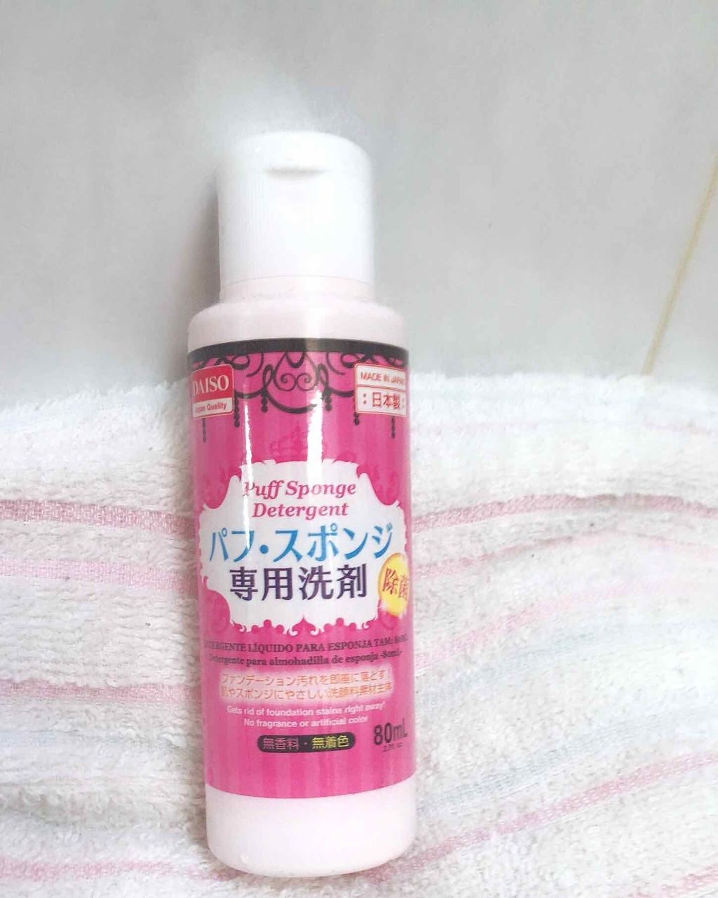 【購入品】使い切りレビュー良い点ダイソーで買える食器用(中性)洗剤よりもキレイにファンデ落ちるこちらの洗剤を使用して洗ったスポンジでメイクしても肌トラブルなかったです汚れている部分にかかるように洗剤たっぷりつけて揉み洗いするとキレイに落ちます...