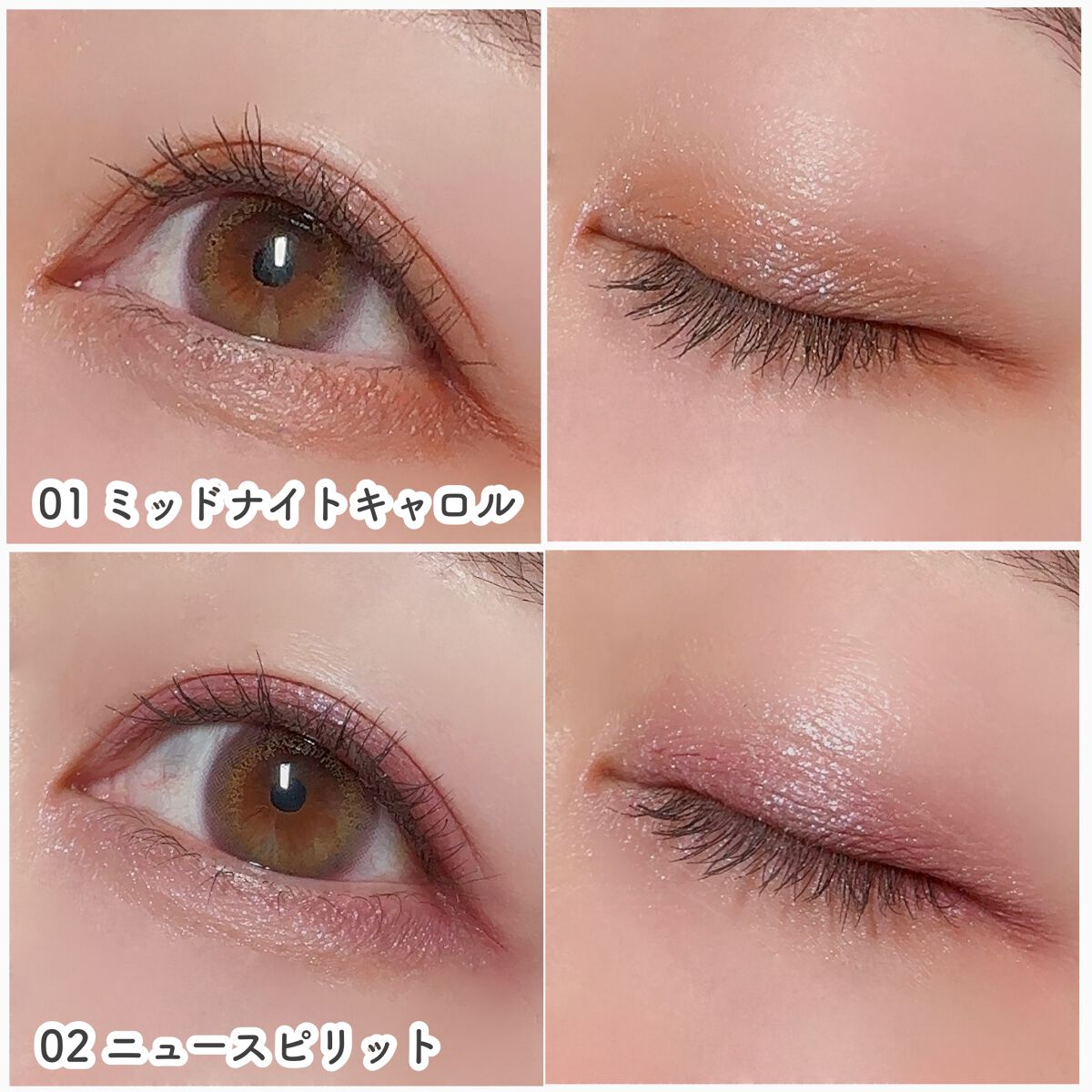 - 【01:ミッドナイトキャロル】 1:タルク、スクワラン、ジステアリン酸Al、イソステアリン酸水添ヒマシ油、リンゴ酸ジイソステアリル、トコフェロール、硫酸Ba、メチルパラベン、(+/-)グンジョウ、マイカ、酸化チタン、酸化鉄、赤226 2:ジメチコン、リンゴ酸ジイソステアリル、タルク、アルキル(C26-28)ジメチコン、(ジメチコン/ビニルジメチコン)クロスポリマー、スクワラン、PEG-10ジメチコン、カルナウバロウ、ポリメタクリル酸メチル、水酸化Al、(+/-)グンジョウ、コンジョウ、ホウケイ酸(Ca/Al)、マイカ、酸化チタン、酸化鉄 3 4:ジメチコン、アルキル(C26-28)ジメチコン、(ジメチコン/ビニルジメチコン)クロスポリマー、リンゴ酸ジイソステアリル、スクワラン、PEG-10ジメチコン、カルナウバロウ、ポリメタクリル酸メチル、水酸化Al、(+/-)グンジョウ、マイカ、酸化チタン、酸化鉄、赤226 【02:ニュースピリット】 1:タルク、スクワラン、ジステアリン酸Al、イソステアリン酸水添ヒマシ油、リンゴ酸ジイソステアリル、トコフェロール、硫酸Ba、メチルパラベン、(+/-)グンジョウ、マイカ、酸化チタン、酸化鉄、赤226 2:ジメチコン、リンゴ酸ジイソステアリル、タルク、アルキル(C26-28)ジメチコン、(ジメチコン/ビニルジメチコン)クロスポリマー、スクワラン、PEG-10ジメチコン、カルナウバロウ、ポリメタクリル酸メチル、水酸化Al、(+/-)グンジョウ、コンジョウ、ホウケイ酸(Ca/Al)、マイカ、酸化チタン、酸化鉄 3 4:ジメチコン、アルキル(C26-28)ジメチコン、(ジメチコン/ビニルジメチコン)クロスポリマー、リンゴ酸ジイソステアリル、スクワラン、PEG-10ジメチコン、カルナウバロウ、ポリメタクリル酸メチル、水酸化Al、(+/-)グンジョウ、マイカ、酸化チタン、酸化鉄、赤226