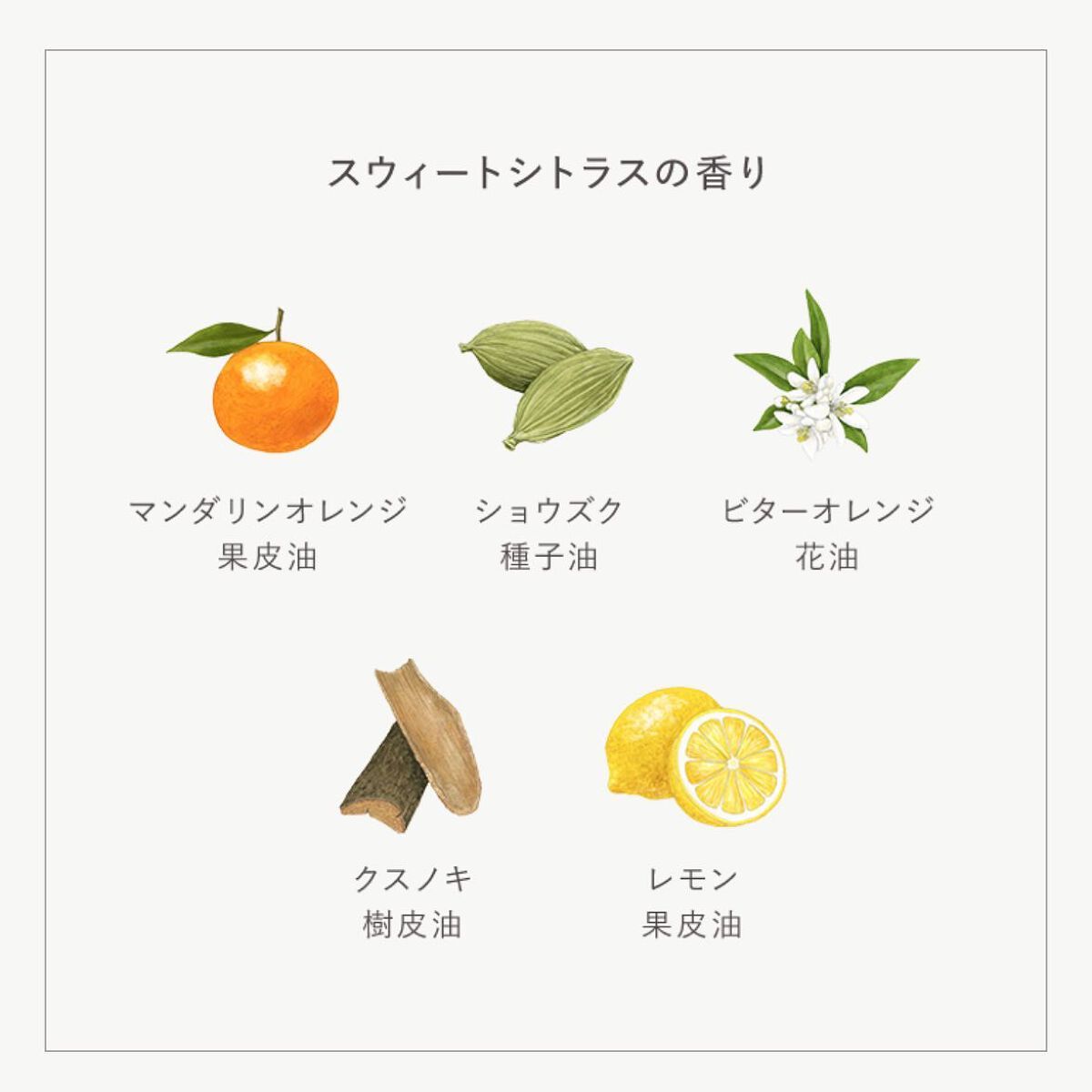 - <モイスチュア&バランシング ローション> 水、DPG、PPG-9ジグリセリル、BG、マルチトール、グリセリン、ベタイン、グリコシルトレハロース、加水分解水添デンプン、1,2-ヘキサンジオール、フェノキシエタノール、グリセリルグルコシド、グリチルリチン酸2K、キサンタンガム、クエン酸Na、シクロヘキサン-1,4-ジカルボン酸ビスエトキシジグリコール、PPG-4セテス-20、(C15-19)アルカン、レモン果皮油、クスノキ樹皮油、マンダリンオレンジ果皮油、ショウズク種子油、ビターオレンジ花油、クエン酸、ビターオレンジ果皮エキス、エチドロン酸4Na、PEG-60水添ヒマシ油、水添(スチレン/イソプレン)コポリマー、水添レシチン、イノシトール、キハダ樹皮エキス、トコフェロール、カノラ油、カニナバラ果実エキス、セージ葉エキス、セイヨウサンザシ果実エキス、ラベンダー花エキス、トウキンセンカ花エキス、アルテア根エキス、カミツレ花エキス、ローズマリー葉エキス、ネムノキ樹皮エキス