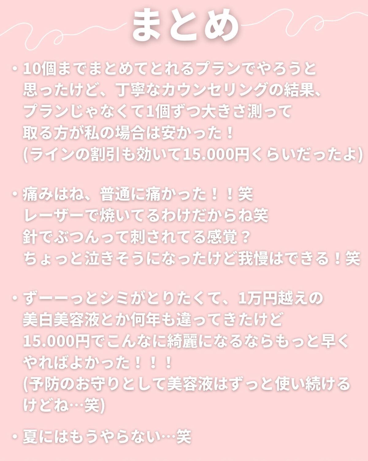 居なくなってる!! だがしかし肝心の1番デカいやつはうっすらまだいる(笑)こいつは手強い。 半年経ってみてからこいつのことは考えよう。明日からはハイドロキノンを開始したいと思います!! 大きなシミで何個か消したい人は2月末まで延長されたシミ取りレーザー3がオススメ。