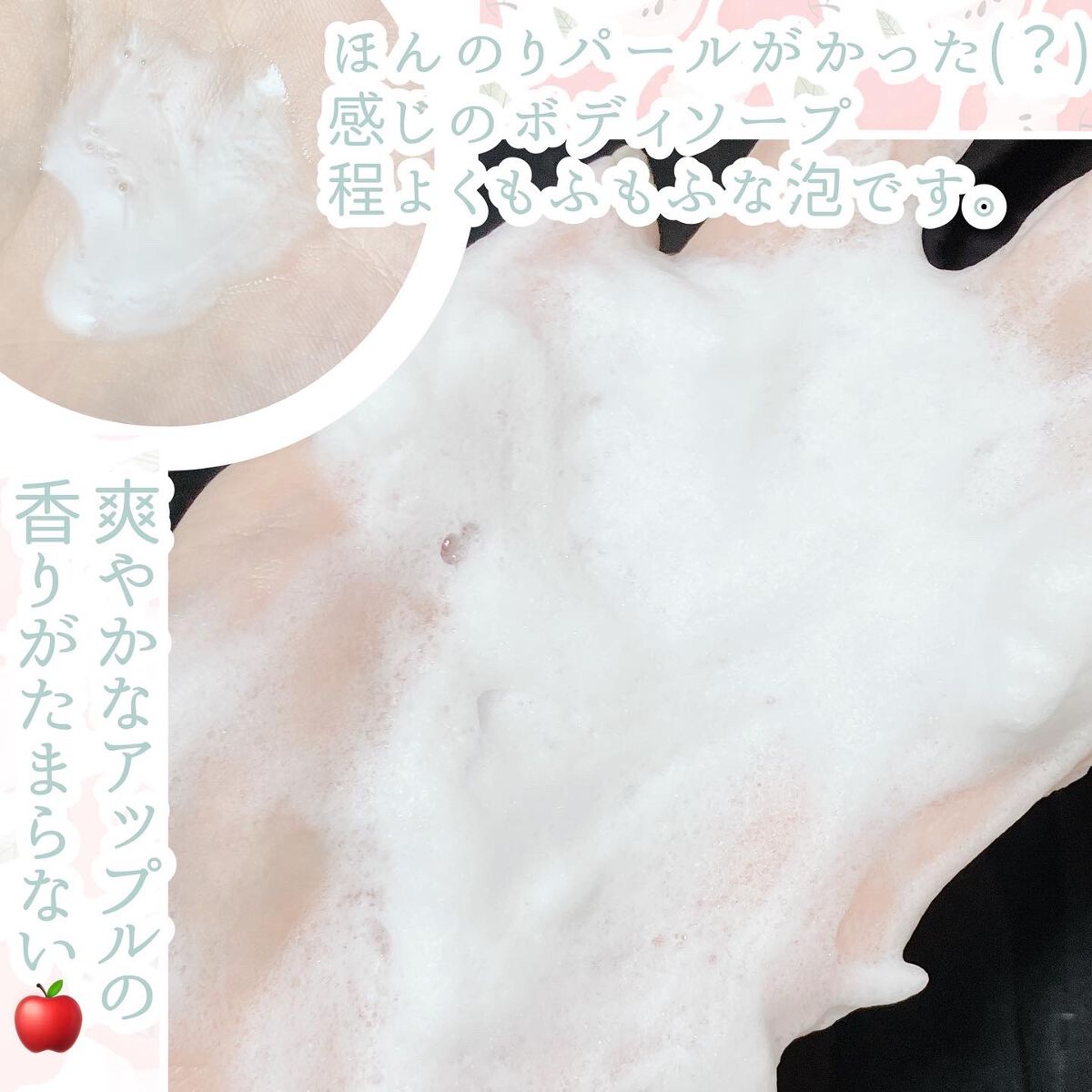 香りは洗顔と同じフレッシュアップルの香り🍏お風呂がリンゴの爽やかな香りでいっぱいになります💚 ピーリング系のボディソープだけあって洗い上がりは肌がすべすべに!! 泡切れもよく、さっぱりしてとても気持ちいいボディソープでした🫧