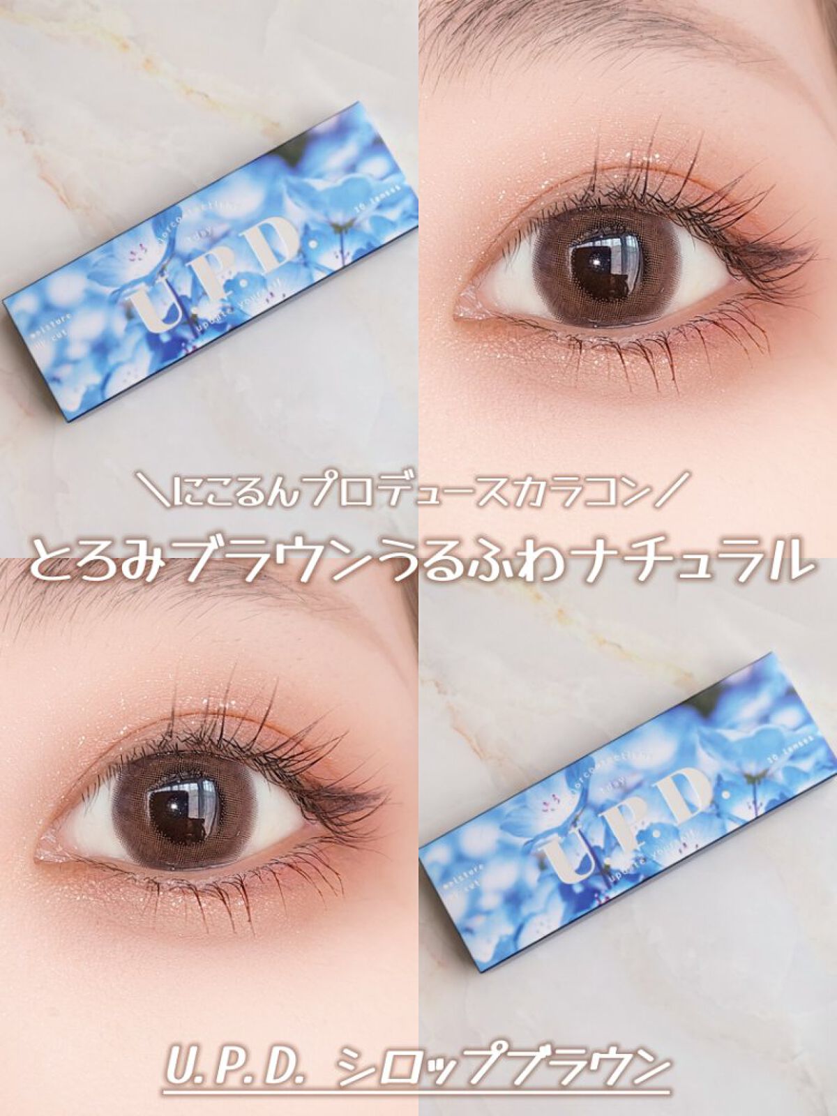 - 「毎日、過去イチかわいいわたし」ナチュラルだけどちゃんと盛れる"正解カラコン"U.P.D. (アプデ)。 もっと可愛く自分をアップデートして欲しいという思いを込めて作られたカラコンです。 ナチュラルな気分の時も盛りたい時も使える大人デザインとサイズ感がちょうど良いデザイン。 カラーコンタクトレンズの不適正使用による眼障害の危険性等などがあります。 ●コンタクトレンズは高度管理医療機器です。不十分な洗浄・消毒など不適切なケアや、長時間・交換期間を超えた装用により、アレルギー性結膜炎、角膜感染症、角膜潰瘍等の重篤な眼障害が発生する危険性があります ●ご使用前に取扱説明書を確認してください 使用上の留意事項 ●眼科医院等を受診してからお求めください ●眼に異常を感じたら直ちにレンズ使用を中止し、お近くの眼科等で診察を受けてください ●医師の指示にしたがってご使用ください ●コンタクトレンズを装用する場合、自覚症状がなくても、眼科医院等での定期検査を受けてください ●レンズに不具合がある場合は使用しないでください