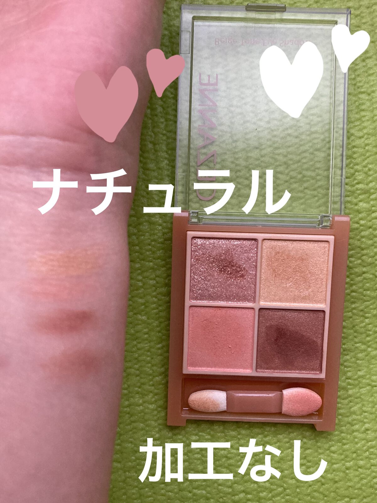 - ラメ・パール・マット3質感の4色アイシャドウ。 肌馴染みの良いベージュを基調としたカラー。ラメ・パール・マットの3質感を重ねて、自然にまぶたを強調し奥行のある大きな目元へ。 しっとり溶け込むような柔らかなパウダーなので、スルスル伸びてまぶたにピタッと密着。保湿成分(スクワラン・ホホバ種子油)配合。