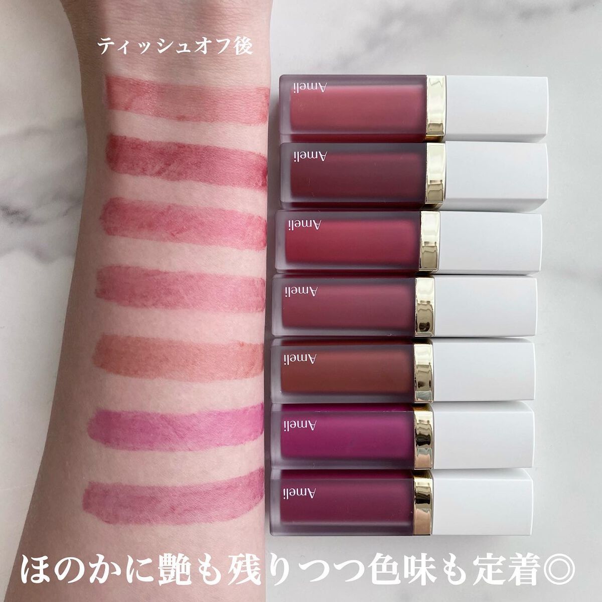 高発色でピタッと皮膜が張るように密着。 程よい艶感と色の持ちが良いリップです◎ 本当に落ちなすぎて焦るくらい落ちない(語彙力 油分には弱いみたいでオイルクレンジングでは馴染ませると落としやすかったです。 割と公式画像とは色味のギャップがあるように感じました⚠️ トレンドっぽいカラーから鮮やか、ヌードなデイリーカラーまで幅広くどんなタイプでも合うカラーを見つけやすいと思います◎