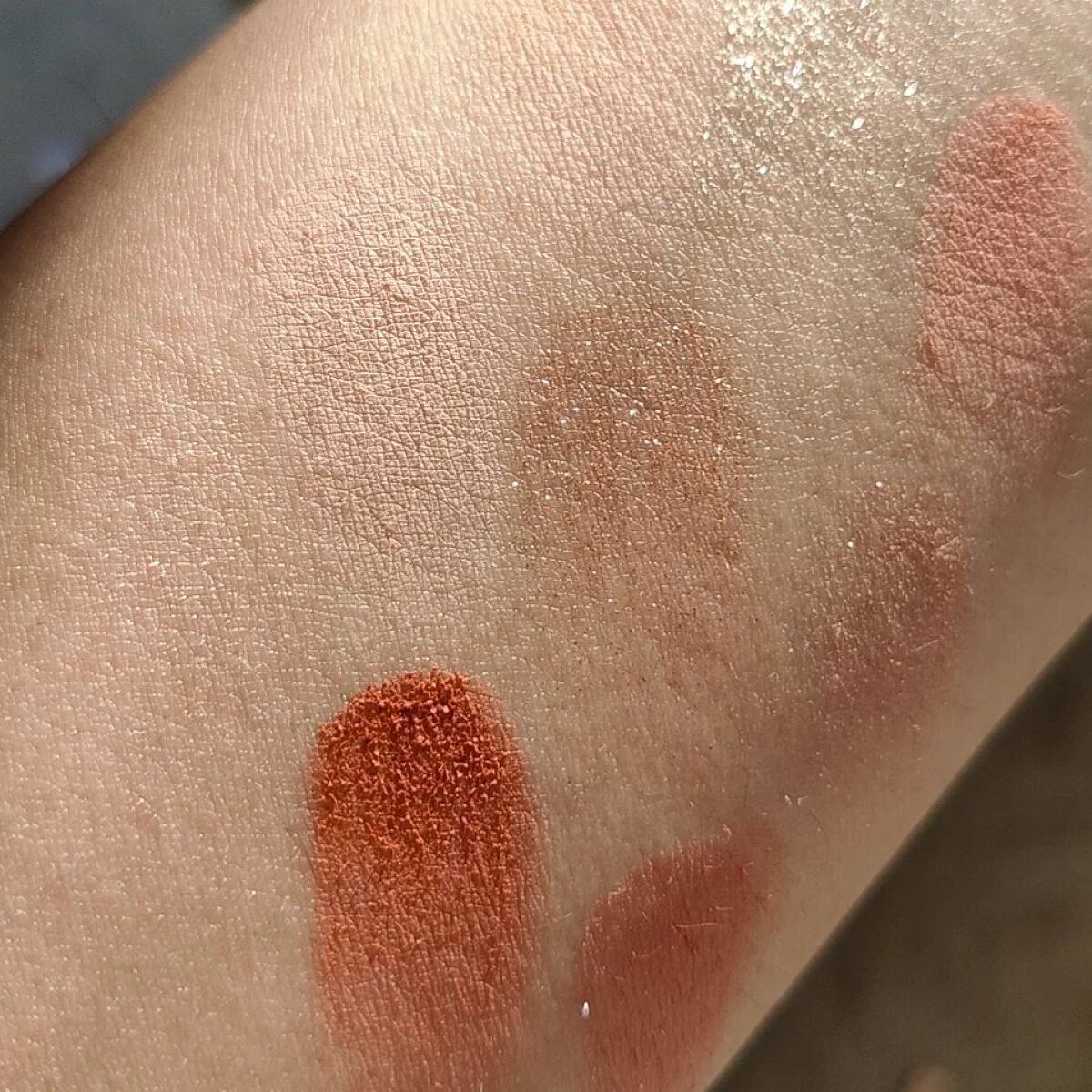 クールインソープは、いちごミルクのような甘くて柔らかい色合いのブルベ向けクールパレット。 01の繊細なホワイトピンクのグリッターが大好きで、下瞼目頭側に入れるとキラっとして可愛かったです。 ブラシよりも指やチップの方がガッツリつくので、濃いカラーを楽しみたいときとツールを使い分けてもいいかなと思います。