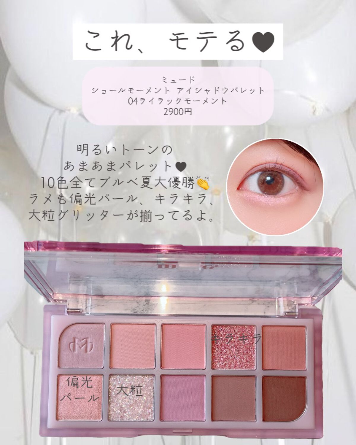 | 大きすぎず小さすぎずのラメでティーン世代からアラサー以上も使いやすいパレット! | 詳細を見る | ||