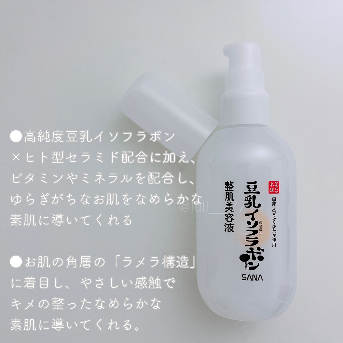 - 「なめらか本舗」から、世界新開発※1の成分「高純度豆乳イソフラボン※2」を配合した、肌を整える導入美容液が新登場!肌メンテで"目指せ、ゆらがない肌!" さらっとしながらも、絶妙なとろみのあるテクスチャーが気持ちよく肌に浸透※3します。 洗顔の後、化粧水の前に使用していただく導入美容液です。手に適量(1~2プッシュ)をとり、お顔全体になじませてください。重ねづけして化粧水としてもお使いいただけます。 【おすすめポイント】 1.豆乳発酵液※2に加え、高純度豆乳イソフラボン※2と、ヒト型セラミド※2も配合!ミネラル※2やビタミン※2などのサポート成分も贅沢配合🎵 2.ラメラ構造に着目して処方開発!キメの整ったなめらかな素肌に導きます。 3.お肌のことを考えた処方設計(無香料・無着色・無鉱物油) ※1 化粧品原料として世界で初めてINCI名(国際化粧品表示名称)を取得しました ※2 保湿成分 ※3 角層まで