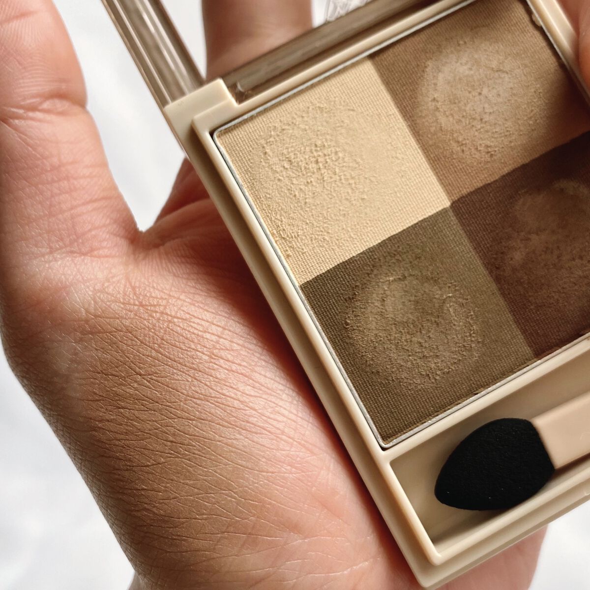 - マットな質感なのに、透け感のあるシアーな発色の4色セットアイカラーです。 美しいグラデーションで自然な立体感のある目もとへ導きます。 軽い感触で伸び広がり、肌に溶け込むように馴染むクリアパウダー(※1)を配合したことで、 ふんわりと透けるような発色でありながら、立体感のある目もとを叶えます。 4色のパレットのうち、左上には、重ねる色を美しく引き立てる「スキンリセットカラー」を配置。 ファンデーションのように、まぶたのくすみや色ムラを自然にカバーします。 (※1)窒化ホウ素