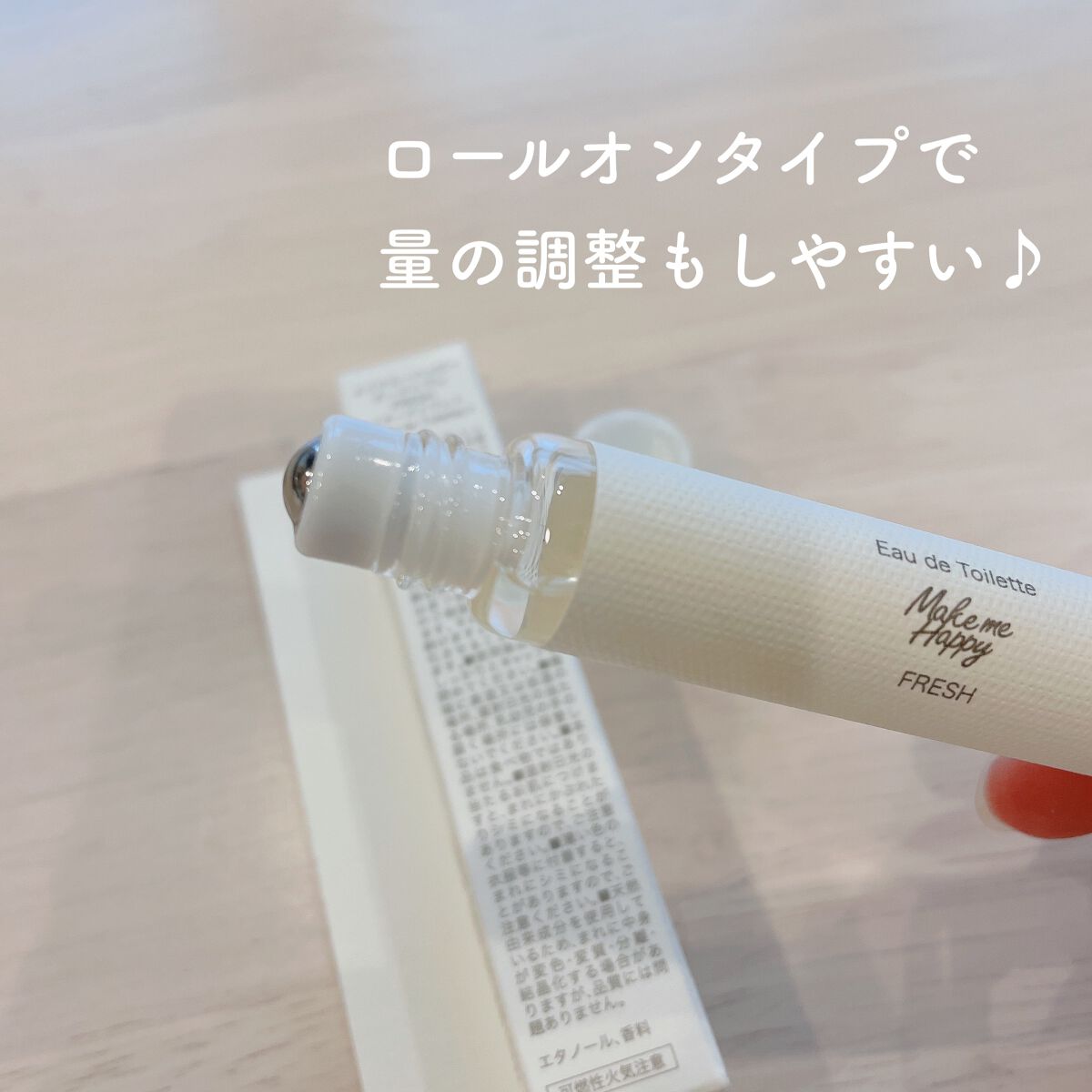 つける量を調整しやすい、ロールオンタイプのオードトワレです。 持ち運びにも便利なサイズ! 正直、「これはちょっと…」っと思うような、きつすぎる香りはなく(個人の意見です笑)、ふわっと香る良い香りがたくさんありました。 メイクミーハッピー オードトワレ WHITE ~白い花束をイメージした柔らかい香り~ 💬柔らかいフローラルの香りで、上品です