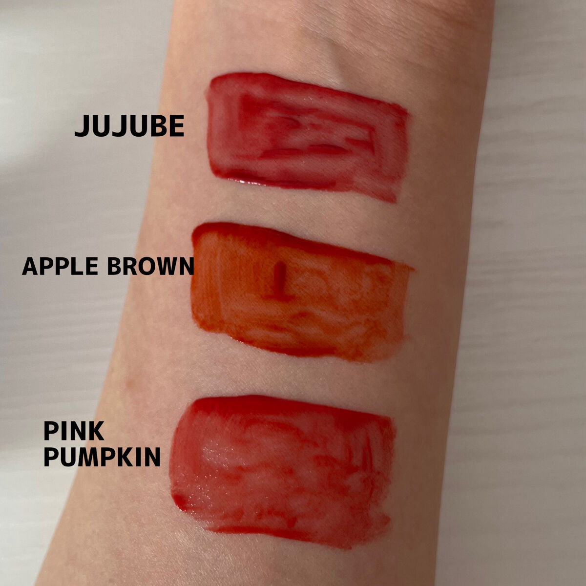 - <06 フィグフィグ(FIGFIG)> 水、オクチルドデカノール、ジメチコン、変性アルコール、アクリレーツコポリマー、ステアリン酸ソルビタン、エチルセルロース、ベヘニルアルコール、ペンチレングリコール、キウイエキス、パパイア果実エキス、グレープフルーツ果実エキス、ココヤシ果実エキス、マンゴー果実エキス、グアバ果実エキス、ポリソルベート60、シリカ、(アクリル酸Na/アクリロイルジメチルタウリンNa)コポリマー、リンゴ酸ジイソステアリル、トリイソステアリン酸ポリグリセリル-2、イソヘキサデカン、ポリソルベート80、ジイソステアリン酸ポリグリセリル-2、オレイン酸ソルビタン、エチルヘキシルグリセリン、BG、EDTA-2Na、フェノキシエタノール、香料、酸化チタン、酸化鉄、赤202、赤227、黄5、赤102、青1 <07 ジュジュブ(JUJUBE)> 水、オクチルドデカノール、ジメチコン、変性アルコール、アクリレーツコポリマー、ステアリン酸ソルビタン、エチルセルロース、ベヘニルアルコール、ペンチレングリコール、キウイエキス、パパイア果実エキス、グレープフルーツ果実エキス、ココヤシ果実エキス、マンゴー果実エキス、グアバ果実エキス、ポリソルベート60、シリカ、(アクリル酸Na/アクリロイルジメチルタウリンNa)コポリマー、トリイソステアリン酸ポリグリセリル-2、リンゴ酸ジイソステアリル、イソヘキサデカン、ポリソルベート80、ジイソステアリン酸ポリグリセリル-2、オレイン酸ソルビタン、エチルヘキシルグリセリン、BG、EDTA-2Na、フェノキシエタノール、香料、酸化チタン、酸化鉄、赤202、赤227、黄5、黄4、青1 <08 アップルブラウン(APPLE BROWN)> 水、オクチルドデカノール、ジメチコン、変性アルコール、アクリレーツコポリマー、ステアリン酸ソルビタン、エチルセルロース、ベヘニルアルコール、ペンチレングリコール、キウイエキス、パパイア果実エキス、グレープフルーツ果実エキス、ココヤシ果実エキス、マンゴー果実エキス、グアバ果実エキス、ポリソルベート60、シリカ、(アクリル酸Na/アクリロイルジメチルタウリンNa)コポリマー、トリイソステアリン酸ポリグリセリル-2、イソヘキサデカン、リンゴ酸ジイソステアリル、ポリソルベート80、ジイソステアリン酸ポリグリセリル-2、オレイン酸ソルビタン、エチルヘキシルグリセリン、BG、EDTA-2Na、フェノキシエタノール、香料、酸化鉄、黄5、赤202、酸化チタン、赤227、青1 <11 ピンクパンプキン(PINK PUMPKIN)> 水、オクチルドデカノール、ジメチコン、変性アルコール、アクリレーツコポリマー、ステアリン酸ソルビタン、エチルセルロース、ベヘニルアルコール、ペンチレングリコール、キウイエキス、パパイア果実エキス、グレープフルーツ果実エキス、ココヤシ果実エキス、マンゴー果実エキス、グアバ果実エキス、ポリソルベート60、シリカ、(アクリル酸Na/アクリロイルジメチルタウリンNa)コポリマー、リンゴ酸ジイソステアリル、イソヘキサデカン、トリイソステアリン酸ポリグリセリル-2、ポリソルベート80、ジイソステアリン酸ポリグリセリル-2、オレイン酸ソルビタン、エチルヘキシルグリセリン、BG、EDTA-2Na、フェノキシエタノール、香料、酸化チタン、酸化鉄、赤202、黄4、赤227、黄5、赤104(1) <22 ポメロスキン(POMELO SKIN)> 水、オクチルドデカノール、ジメチコン、変性アルコール、アクリレーツコポリマー、ポリソルベート60、エチルセルロース、ベヘニルアルコール、ペンチレングリコール、(アクリル酸Na/アクリロイルジメチルタウリンNa)コポリマー、シリカ、ステアリン酸ソルビタン、イソヘキサデカン、リンゴ酸ジイソステアリル、フェノキシエタノール、酸化チタン、トリイソステアリン酸ポリグリセリル-2、ポリソルベート80、酸化鉄、香料、オレイン酸ソルビタン、エチレンジアミンジコハク酸3Na、エチルヘキシルグリセリン、赤202、ジイソステアリン酸ポリグリセリル-2、赤227、黄5、青1、BG、キウイエキス、パパイア果実エキス、グレープフルーツ果実エキス、ココヤシ果実、マンゴー果実エキス、グアバ果実エキス <23 ヌカダミア(NUCADAMIA)> 水、オクチルドデカノール、ジメチコン、変性アルコール、アクリレーツコポリマー、ポリソルベート60、エチルセルロース、ベヘニルアルコール、ペンチレングリコール、(アクリル酸Na/アクリロイルジメチルタウリンNa)コポリマー、シリカ、ステアリン酸ソルビタン、イソヘキサデカン、フェノキシエタノール、リンゴ酸ジイソステアリル、酸化チタン、ポリソルベート80、トリイソステアリン酸ポリグリセリル-2、酸化鉄、香料、オレイン酸ソルビタン、エチレンジアミンジコハク酸3Na、赤202、赤227、黄5、ジイソステアリン酸ポリグリセリル-2、エチルヘキシルグリセリン、黄4、青1、BG、キウイエキス、パパイア果実エキス、グレープフルーツ果実エキス、ココヤシ果実、マンゴー果実エキス <24 ピーリングエンドゥ(PEELING ANGDOO)> 水、オクチルドデカノール、ジメチコン、変性アル