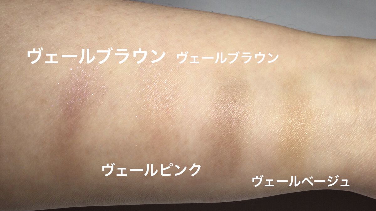 - <BE-1 ヴェールベージュ> 合成フルオロフロゴパイト・ジメチコン・(ジメチコン/ビニルジメチコン)クロスポリマー・(トリメチルペンタンジオール/アジピン酸/グリセリン)クロスポリマー・ホウケイ酸(Ca/Al)・トリメチルシロキシケイ酸・イソドデカン・トコフェロール・ヒアルロン酸Na・エチルヘキシルグリセリン・スクワラン・ハイドロゲンジメチコン・ペンチレングリコール・酸化スズ・水酸化Al・フェノキシエタノール・マイカ・酸化チタン・酸化鉄 <BR-2 ヴェールブラウン> 合成フルオロフロゴパイト・ジメチコン・(ジメチコン/ビニルジメチコン)クロスポリマー・(トリメチルペンタンジオール/アジピン酸/グリセリン)クロスポリマー・トリメチルシロキシケイ酸・イソドデカン・トコフェロール・ヒアルロン酸Na・エチルヘキシルグリセリン・スクワラン・ハイドロゲンジメチコン・ペンチレングリコール・酸化スズ・水酸化Al・フェノキシエタノール・マイカ・酸化チタン・酸化鉄 <PK-3 ヴェールピンク> ジメチコン・合成フルオロフロゴパイト・ホウケイ酸(Ca/Al)・(ジメチコン/ビニルジメチコン)クロスポリマー・(トリメチルペンタンジオール/アジピン酸/グリセリン)クロスポリマー・トリメチルシロキシケイ酸・イソドデカン・トコフェロール・ヒアルロン酸Na・エチルヘキシルグリセリン・シリカ・スクワラン・ハイドロゲンジメチコン・ペンチレングリコール・酸化スズ・水酸化Al・フェノキシエタノール・マイカ・酸化チタン・酸化鉄 <PU-4 ヴェールモーヴ> ジメチコン・合成フルオロフロゴパイト・(ジメチコン/ビニルジメチコン)クロスポリマー・(トリメチルペンタンジオール/アジピン酸/グリセリン)クロスポリマー・ホウケイ酸(Ca/Al)・トリメチルシロキシケイ酸・イソドデカン・トコフェロール・ヒアルロン酸Na・エチルヘキシルグリセリン・カオリン・シリカ・ジミリスチン酸Al・スクワラン・ハイドロゲンジメチコン・ペンチレングリコール・酸化スズ・水酸化Al・フェノキシエタノール・グンジョウ・マイカ・酸化チタン・酸化鉄