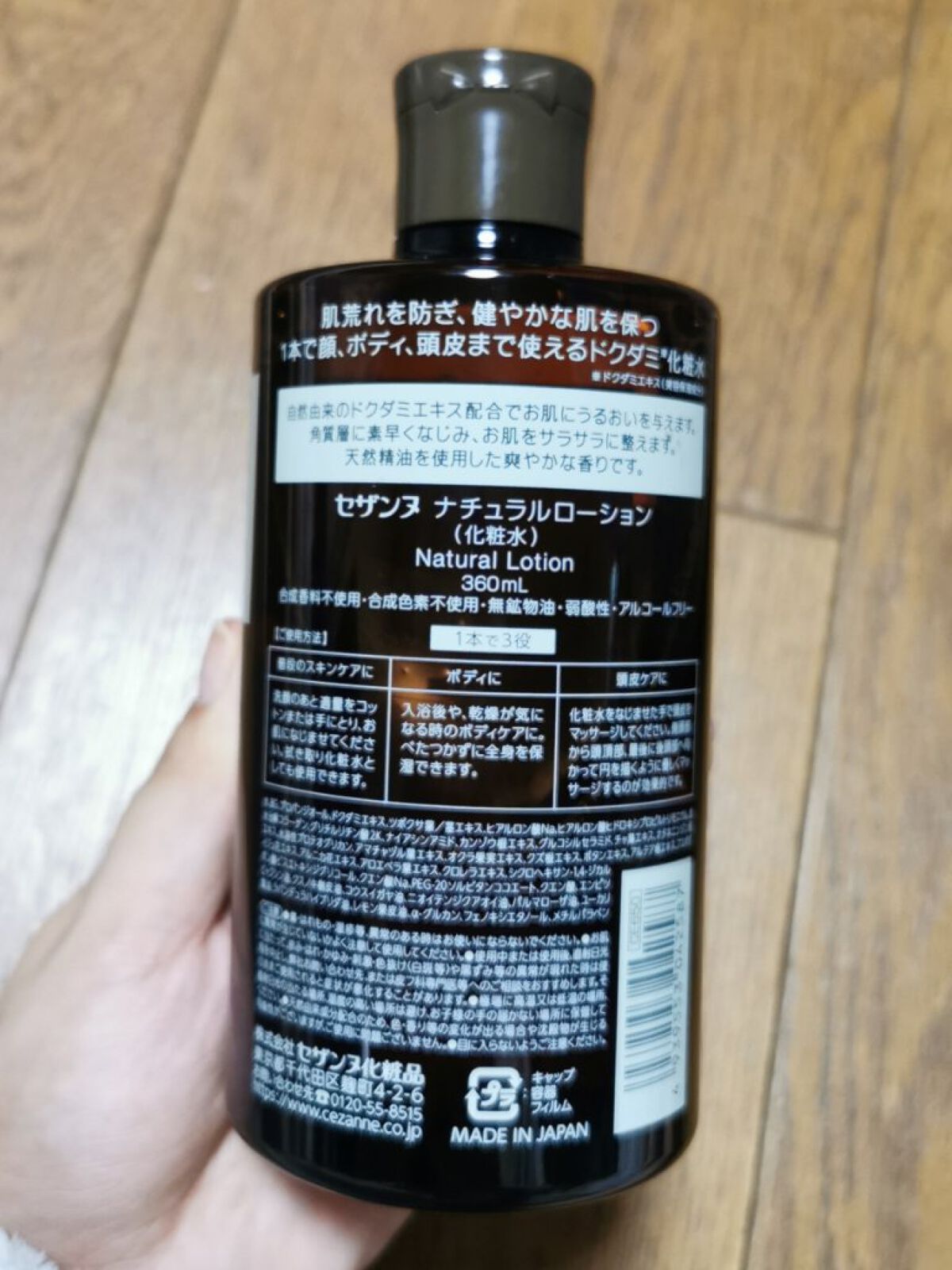 CEZANNEナチュラルローション【使った商品】ナチュラルローション【商品の特徴】¥715円(税込)360mlどくだみエキスツボクサ葉茎エキス等植物エキス配合顔・身体・頭皮に使用可アルコール鉱物油合成着色料合成香料フリー【使用感】透けた茶色が...