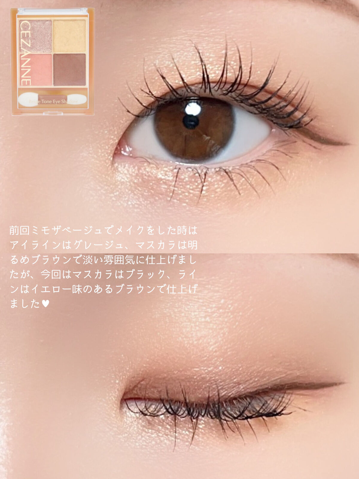 セザンヌのアイシャドウはブラウンパレットですが、少しローズがかった色味なので使いやすいです✨✨ 目元に締りも入れたいので、アイライナーとマスカラはブラックを使用しています🖤 ブルベもブラウンメイクがしたい🤎! そんな日の組み合わせはこちら✨