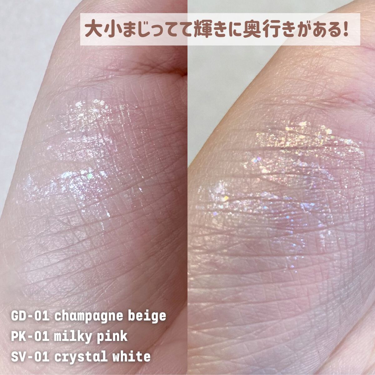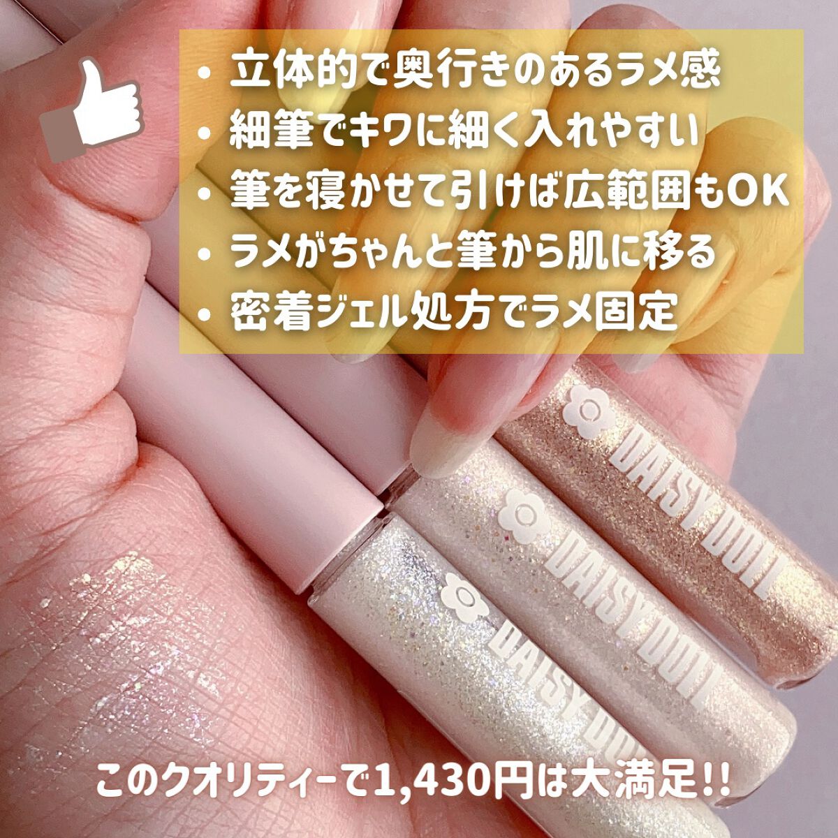 デイジードールの新色が進化しすぎてる! ザクザクパールと大粒ラメで目元にまばゆい輝きが、、🥹✨✨ 密着ジェル処方だから、ラメ落ちしにくいよ✨ いつものメイクがパッと華やぐ星屑グリッター💫