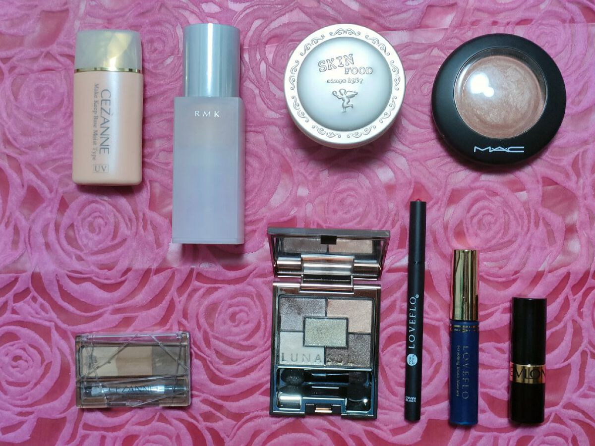 アリィー ニュアンスチェンジUV ジェル RSを、顔全体にまんべんなく塗ります。 RMK RMK ジェルクリーミィファンデーション 103を、顔全体にまんべんなく塗ります。 ジョンソンベビー ジョンソン ベビーパウダーを、顔全体にまんべんなく軽くはたきます。 THE BODY SHOP bronze shade warm glowを、両頬に塗ります。 KATE リフレクトミラーアイズ BR-1の締め色を、眉毛全体にまんべんなく塗ります。 URGLAM UR GLAMBLOOMING EYE COLOR PALETTE 01を、使用しました。 ちふれ リキッド アイライナー 筆ペンタイプ BK30 ブラックを、塗ります。 CEZANNE エアリーカールマスカラを、まつ毛全体にまんべんなく塗ります。 MAYBELLINE NEW YORK コロッサルボリュームエクスプレスを、まつ毛全体にまんべんなく塗ります。 MAYBELLINE NEW YORK SPステイ マットインク 135を、唇全体にまんべんなく塗ります。