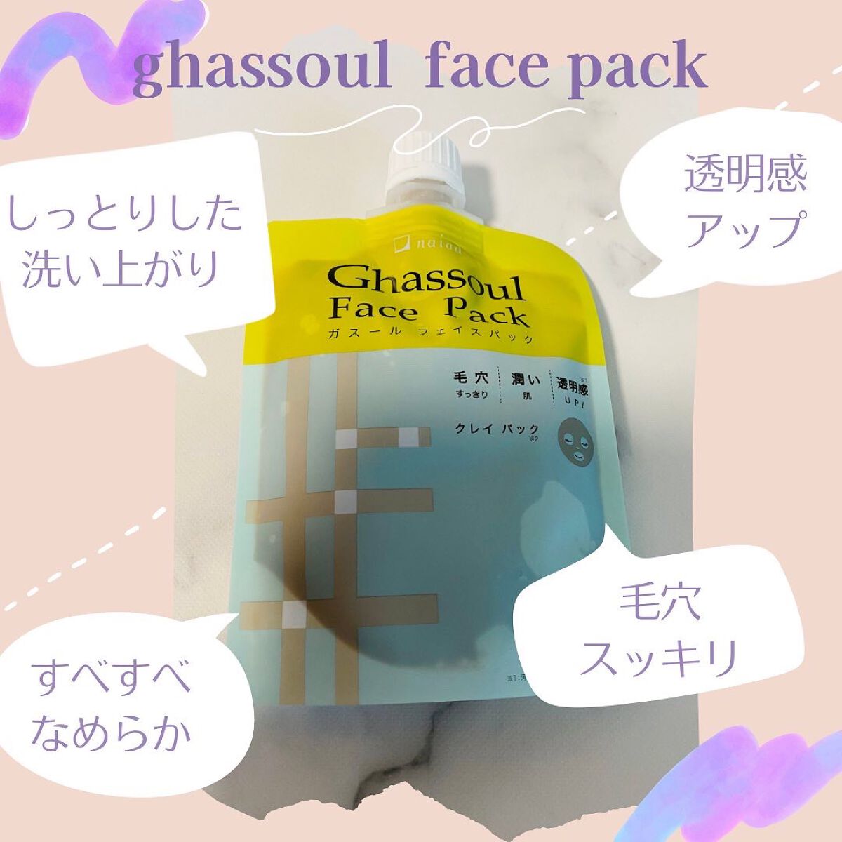 - ガスール本来の使用感・良さを手軽に実感できる便利なペーストタイプ。 長年ガスールを製造・販売してきたナイアードがおすすめするこだわりのレシピでフェイスパック用の配合率を実現。ガスール本来のすっきりした優しい洗い上がりを手軽に実感していただけます。 ガスールの吸着力がしみ・くすみの原因である古い角質や毛穴の汚れを優しく取り除き、透明感のある肌へ。ガスールに含まれるミネラル成分が潤いを与えながら肌を穏やかに整えます。