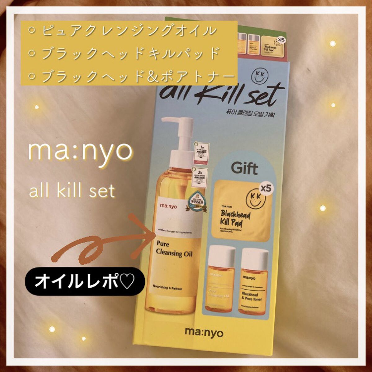 ma:nyo/PureCleansingOil長年愛用しているマニョのクレンジングオイル💛天然由来成分99.9%で、敏感肌でも使いやすいのが特徴。肌にとっても優しいクレンジングオイルです。少しとろみのあるテクスチャーが肌にスーッと広がって、乳...