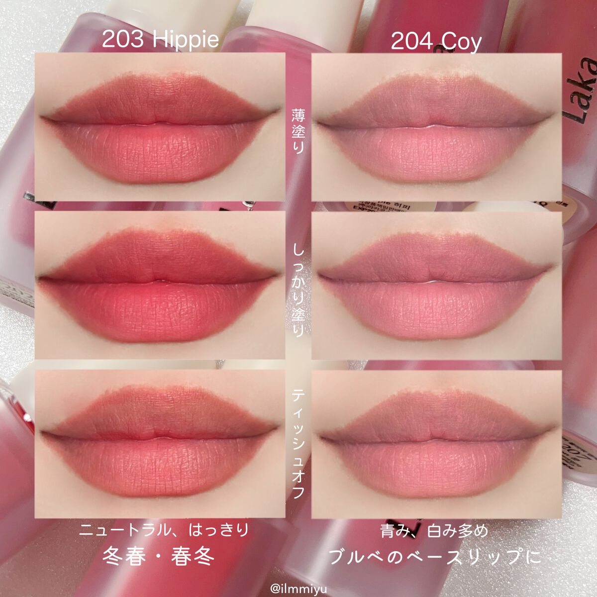 【色比較・パーソナルカラータイプ分け🌈】𓂃𝚃𝚠𝚒𝚝𝚝𝚎𝚛・𝙸𝚗𝚜𝚝𝚊𝚐𝚛𝚊𝚖→@𝗂𝗅𝗆𝗆𝗂𝗒𝗎※カラータイプ分けはラピスの16タイプカラーメソッド®︎に基づくアナリスト個人の見解です。他のロムアンドティントの全色スウォッチやパーソナルカ...