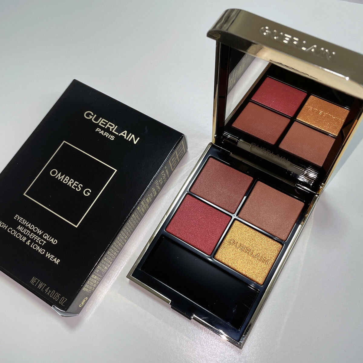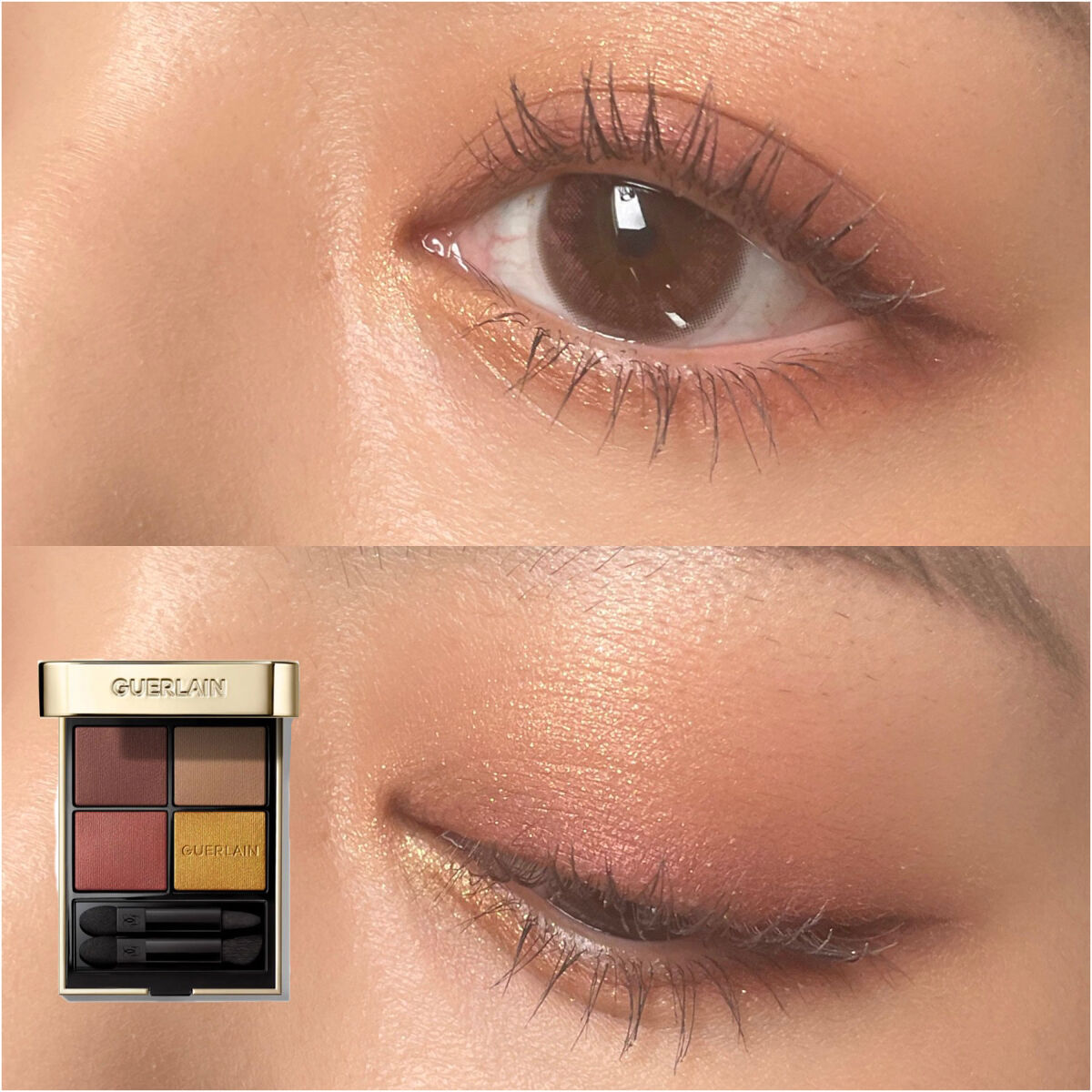 - 〈オンブル ジェ〉は、色鮮やかなピグメント配合の、シルキーなテクスチャー。長時間続く美しい発色と奥行きで目もとを彩る、ゲランの4色入りアイシャドウパレットです。 サテン、マット、メタリック、イリディセントの4つの質感に、それぞれ最適なバランスでピグメントとパールを配合することで、心を奪う鮮やかな発色と深みのある仕上がりを叶えます。それはまるで、自然から生み出された宝石のようなプリミティブな輝きと存在感。 シェード、テクスチャー、フィニッシュを遊ぶように組み合わせ、昼でも夜でも、目もとを色とりどりに彩る、多彩でバランスのとれたパレットに仕上げました。 また、ホリデーコレクションから、きらめく折り紙の精巧なパターンをまとった〈オンブル ジェ〉が登場。 シマーゴールドやスパークリングシルバー、ウォーム ヌード、ブラウンのニュアンスが絶妙に重なり合い、星の輝きを目元に宿すアイシャドウ パレット。