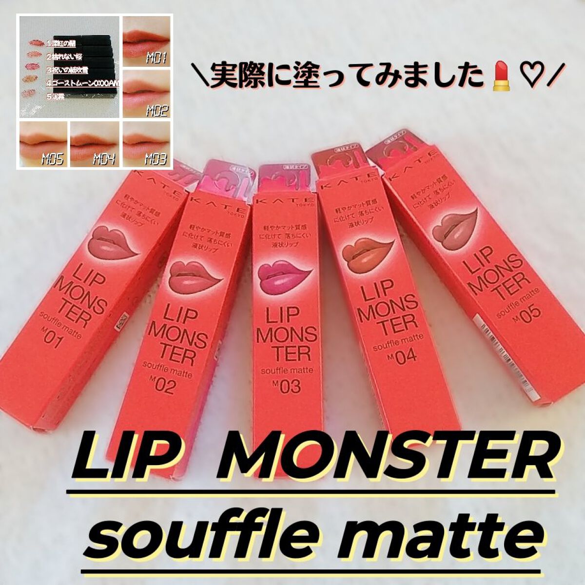 #提供❁.˚‧º‧‧º·˚.❁ リプモン スフレマット 4色スウォッチ❁.˚‧º‧‧º·˚.❁KATEリップモンスタースフレマットをお試し✧*˚₊‧ੈ✩おすすめポイントੈ✩‧₊˚*⋆つけたての色が長時間持続⋆ふんわりマット質感に変化する落...