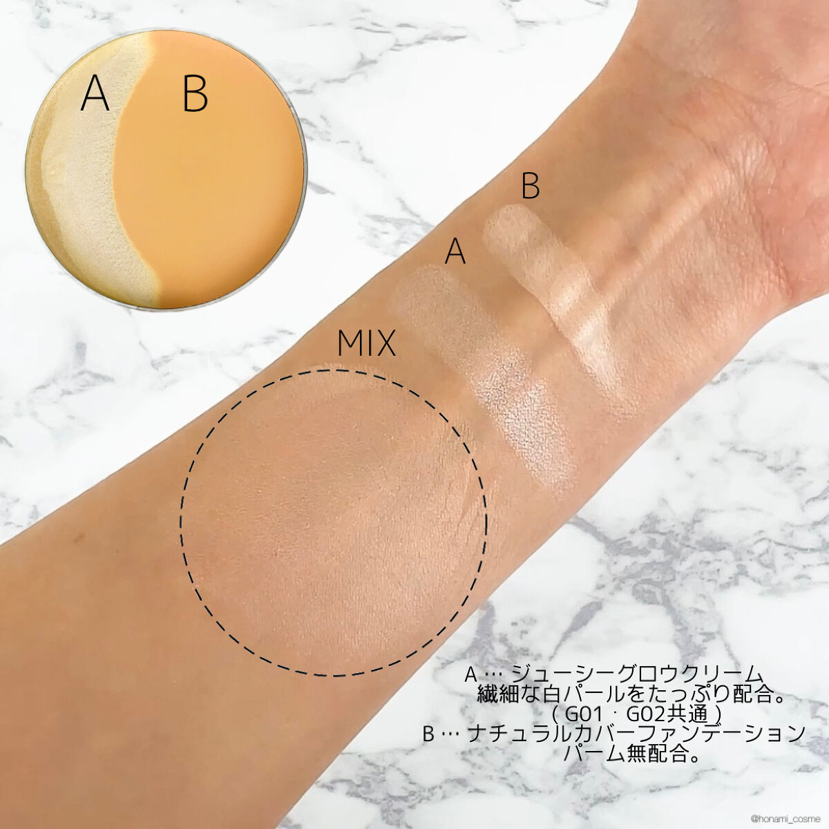 - ツヤとカバーの2種のベースが1つになった 2in1ツヤ肌パクト 繊細な白パールをたっぷり配合した上品なジューシーグロウクリームと パール無配合で肌悩みを自然にカバーするナチュラルカバーファンデーションの、2in1構造! ツヤを好きなだけ自由にのせて、自分好みのツヤ肌を叶えてください♡ 美容オイル配合で、まるでスキンケアしたてのようなちゅるちゅるお肌が続きます。