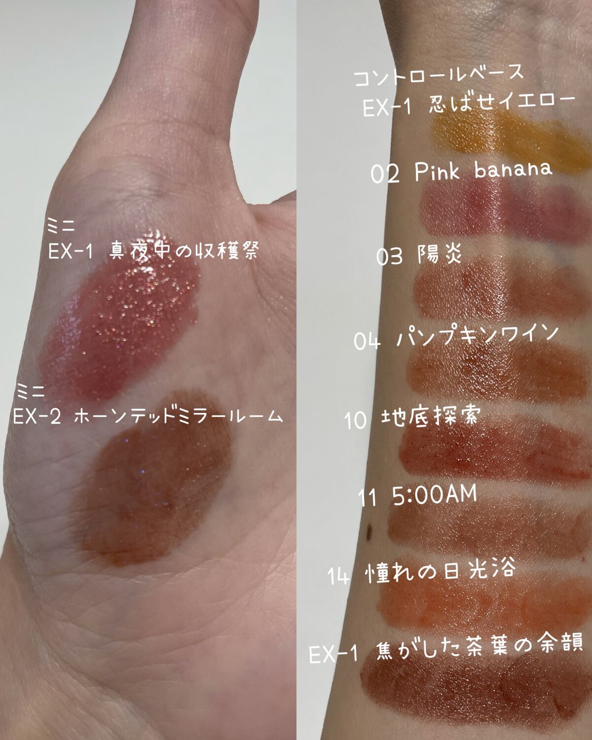 - <01 欲望の塊> テトライソステアリン酸ジペンタエリスリチル、トリ(カプリル酸/カプリン酸)グリセリル、オクチルドデカノール、ラウロイルグルタミン酸ジ(フィトステリル/オクチルドデシル)、ビスアルキル(C16-18)グリセリルウンデシルジメチコン、イソノナン酸イソトリデシル、水添ポリイソブテン、ラウロイルグルタミン酸ジ(オクチルドデシル/フィトステリル/ベヘニル)、パラフィン、合成ワックス、ダイマージリノール酸(フィトステリル/イソステアリル/セチル/ステアリル/ベヘニル)、マイクロクリスタリンワックス、水添マイクロクリスタリンワックス、ヒドロキシステアリン酸エチルヘキシル、トコフェロール、ホホバ種子油、オリーブ果実油、アーモンド油、(エチレン/プロピレン)コポリマー、ポリエチレン、ジメチコン、(+/-)(チタン/酸化チタン)焼結物、マイカ、ラウロイルアスパラギン酸Na、ラウロイルリシン、塩化亜鉛、酸化チタン、酸化鉄、水酸化Al、硫酸Ba、トリイソステアリン酸イソプロピルチタン、酸化スズ、ホウケイ酸(Ca/Al)、合成フルオロフロゴパイト、黄4、黄5、赤104(1)、赤201、赤202 <02 ピンクバナナ> テトライソステアリン酸ジペンタエリスリチル、トリ(カプリル酸/カプリン酸)グリセリル、オクチルドデカノール、ラウロイルグルタミン酸ジ(フィトステリル/オクチルドデシル)、ビスアルキル(C16-18)グリセリルウンデシルジメチコン、イソノナン酸イソトリデシル、水添ポリイソブテン、ラウロイルグルタミン酸ジ(オクチルドデシル/フィトステリル/ベヘニル)、パラフィン、合成ワックス、ダイマージリノール酸(フィトステリル/イソステアリル/セチル/ステアリル/ベヘニル)、マイクロクリスタリンワックス、水添マイクロクリスタリンワックス、ヒドロキシステアリン酸エチルヘキシル、トコフェロール、ホホバ種子油、オリーブ果実油、アーモンド油、(エチレン/プロピレン)コポリマー、ポリエチレン、ジメチコン、(+/-)(チタン/酸化チタン)焼結物、マイカ、ラウロイルアスパラギン酸Na、ラウロイルリシン、塩化亜鉛、酸化チタン、酸化鉄、水酸化Al、硫酸Ba、トリイソステアリン酸イソプロピルチタン、酸化スズ、ホウケイ酸(Ca/Al)、合成フルオロフロゴパイト、黄4、黄5、赤104(1)、赤201、赤202 <03 陽炎> テトライソステアリン酸ジペンタエリスリチル、トリ(カプリル酸/カプリン酸)グリセリル、オクチルドデカノール、ラウロイルグルタミン酸ジ(フィトステリル/オクチルドデシル)、ビスアルキル(C16-18)グリセリルウンデシルジメチコン、イソノナン酸イソトリデシル、水添ポリイソブテン、ラウロイルグルタミン酸ジ(オクチルドデシル/フィトステリル/ベヘニル)、パラフィン、合成ワックス、ダイマージリノール酸(フィトステリル/イソステアリル/セチル/ステアリル/ベヘニル)、マイクロクリスタリンワックス、水添マイクロクリスタリンワックス、ヒドロキシステアリン酸エチルヘキシル、トコフェロール、ホホバ種子油、オリーブ果実油、アーモンド油、(エチレン/プロピレン)コポリマー、ポリエチレン、ジメチコン、(+/-)(チタン/酸化チタン)焼結物、マイカ、ラウロイルアスパラギン酸Na、ラウロイルリシン、塩化亜鉛、酸化チタン、酸化鉄、水酸化Al、硫酸Ba、トリイソステアリン酸イソプロピルチタン、酸化スズ、ホウケイ酸(Ca/Al)、合成フルオロフロゴパイト、黄4、黄5、赤104(1)、赤201、赤202 <04 パンプキンワイン> テトライソステアリン酸ジペンタエリスリチル、トリ(カプリル酸/カプリン酸)グリセリル、オクチルドデカノール、ラウロイルグルタミン酸ジ(フィトステリル/オクチルドデシル)、ビスアルキル(C16-18)グリセリルウンデシルジメチコン、イソノナン酸イソトリデシル、水添ポリイソブテン、ラウロイルグルタミン酸ジ(オクチルドデシル/フィトステリル/ベヘニル)、パラフィン、合成ワックス、ダイマージリノール酸(フィトステリル/イソステアリル/セチル/ステアリル/ベヘニル)、マイクロクリスタリンワックス、水添マイクロクリスタリンワックス、ヒドロキシステアリン酸エチルヘキシル、トコフェロール、ホホバ種子油、オリーブ果実油、アーモンド油、(エチレン/プロピレン)コポリマー、ポリエチレン、ジメチコン、(+/-)(チタン/酸化チタン)焼結物、マイカ、ラウロイルアスパラギン酸Na、ラウロイルリシン、塩化亜鉛、酸化チタン、酸化鉄、水酸化Al、硫酸Ba、トリイソステアリン酸イソプロピルチタン、酸化スズ、ホウケイ酸(Ca/Al)、合成フルオロフロゴパイト、黄4、黄5、赤104(1)、赤201、赤202 <05 ダークフィグ> テトライソステアリン酸ジペンタエリスリチル、トリ(カプリル酸/カプリン酸)グリセリル、オクチルドデカノール、ラウロイルグルタミン酸ジ(フィトステリル/オクチルドデシル)、ビスアルキル(C16-18)グリセリルウンデシルジメチコン、イソノナン酸イソトリデシル、水添ポリイソブテン、ラウロイルグルタミン酸ジ(オクチルドデシル/フィトステリル/ベヘニル)、