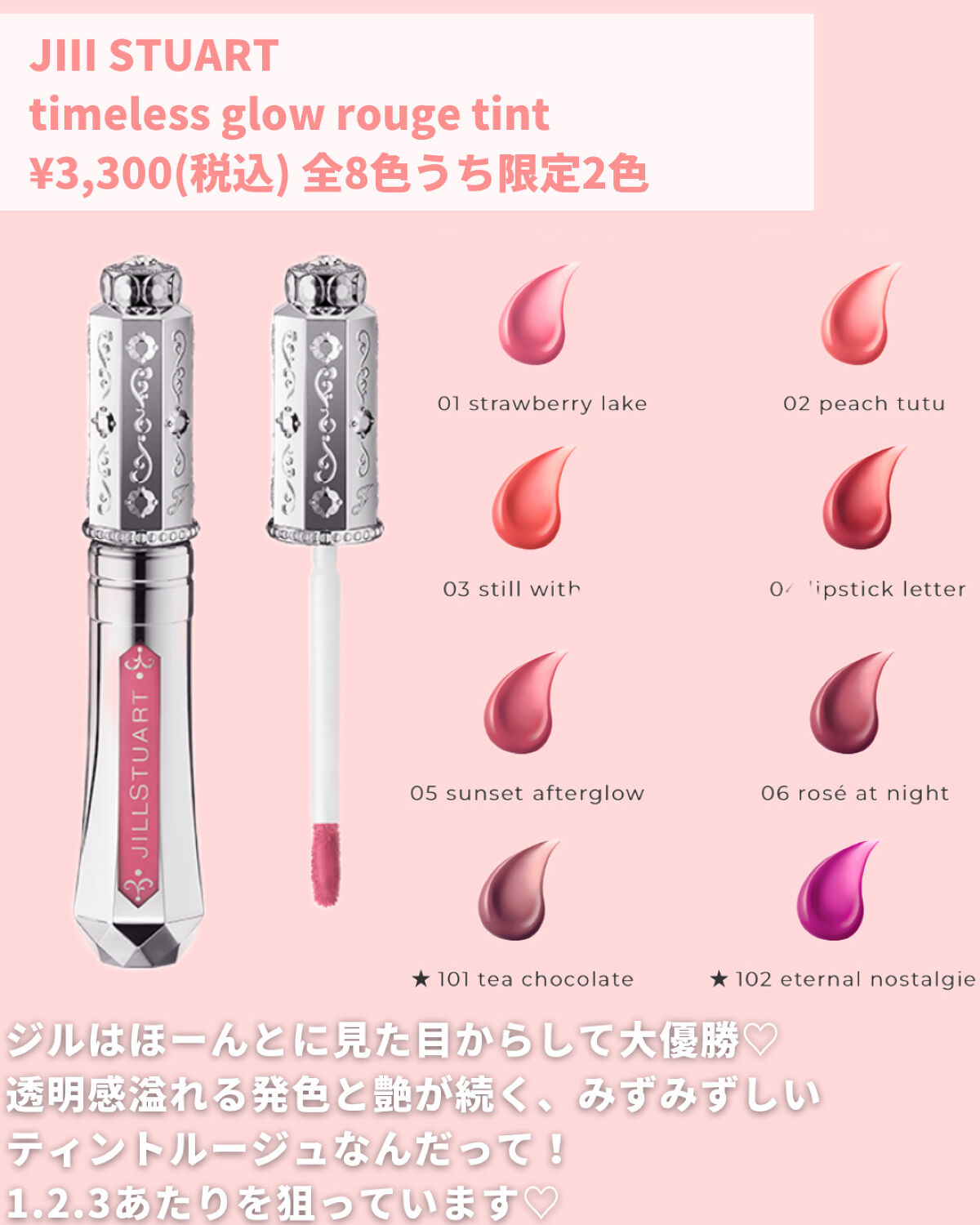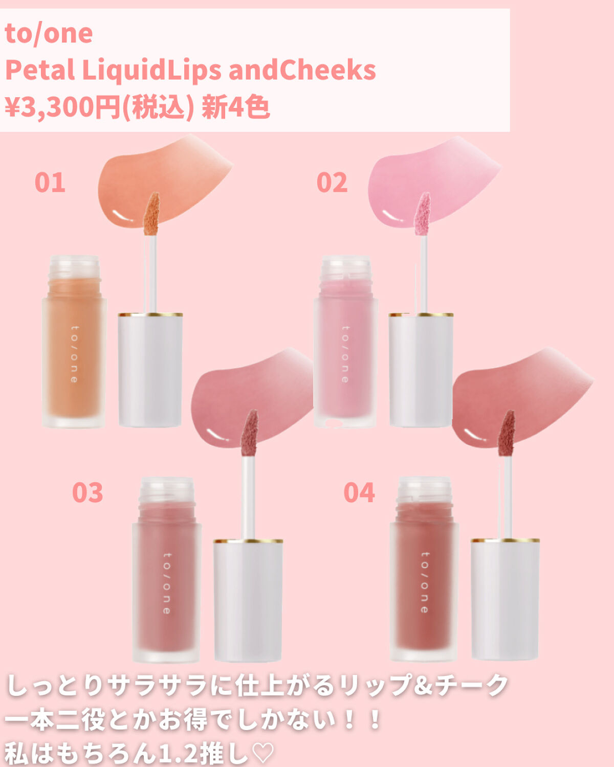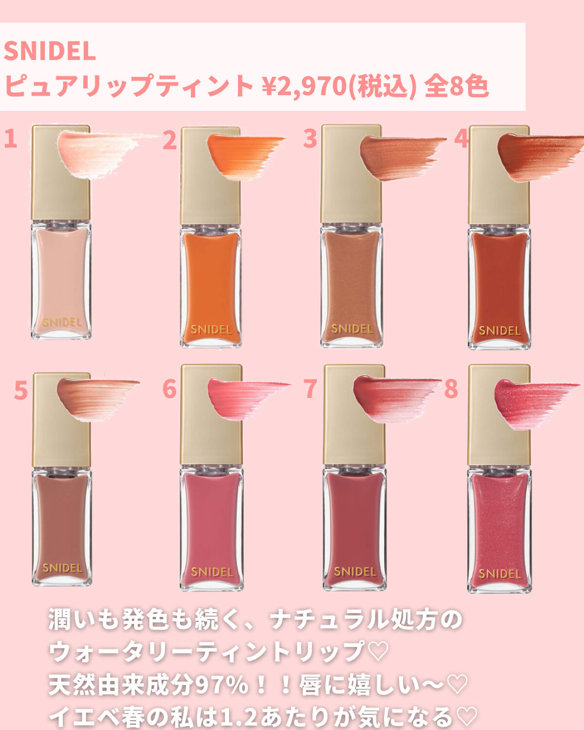 このぷるっぷる唇になれる最高リップを よくぞリニューアルしてくれた🥹💕 つやぷるリップが大好きでこれしか 使ってない時があったなぁ😌💄✨ 明るいベージュで唇にのせるとナチュラルに 血色感UP!! 明るさ、柔らかさが得意なイエベ春さんにおすすめ♡ 明るい黄み寄りピンク♡ イエベ春さんに幅広くおすすめ♡ 腕にだすとしっかりめブラウンカラーだけど 唇にのせるのそんなに重たくない印象! イエベ秋さんに幅広くおすすめ♡ 明るさ得意な春夏タイプが使いやすい ピンクカラー♡ 名前の通り万人に愛されそうなピンク♡ イメージしていたテラコッタより ずっと柔らかく穏やかなカラー♡ 柔らかいイメージにしたい 春秋さんにおすすめ♡ ほんのりくすみがかったピンクブラウン♡ 夏秋またぐかたにおすすめですが イエベ春の私も好き♡ 全7色の中で1番青みを感じるカシスカラー♡ ブルベさんにおすすめ♡
