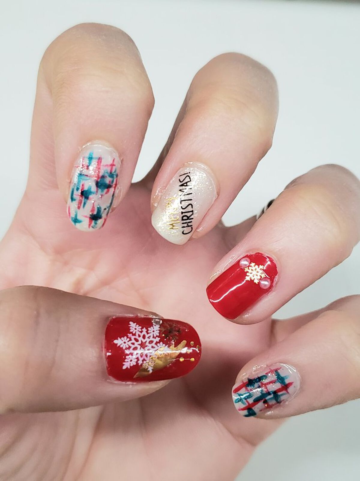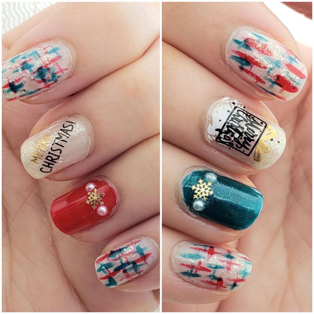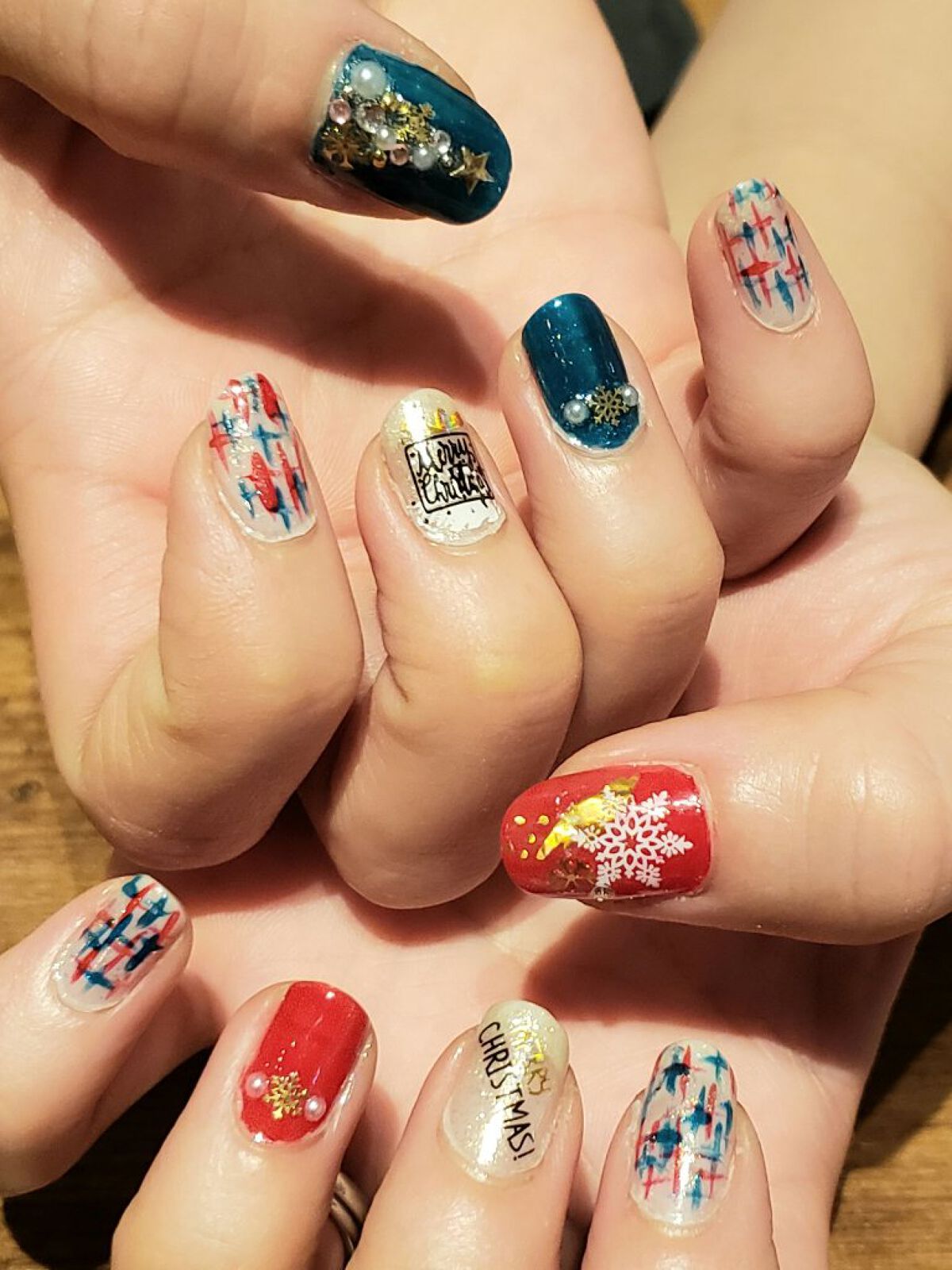 【クリスマスネイルVol.2⭐️】クリスマスネイル第2弾はボルドー×ホワイト×ゴールドのネイルです!赤とグリーンのストーンを使いたくてこのデザインを考えました!クリスマスネイルは第3弾までありますのでお楽しみに〜🤍[使用ポリッシュ]ベースコー...