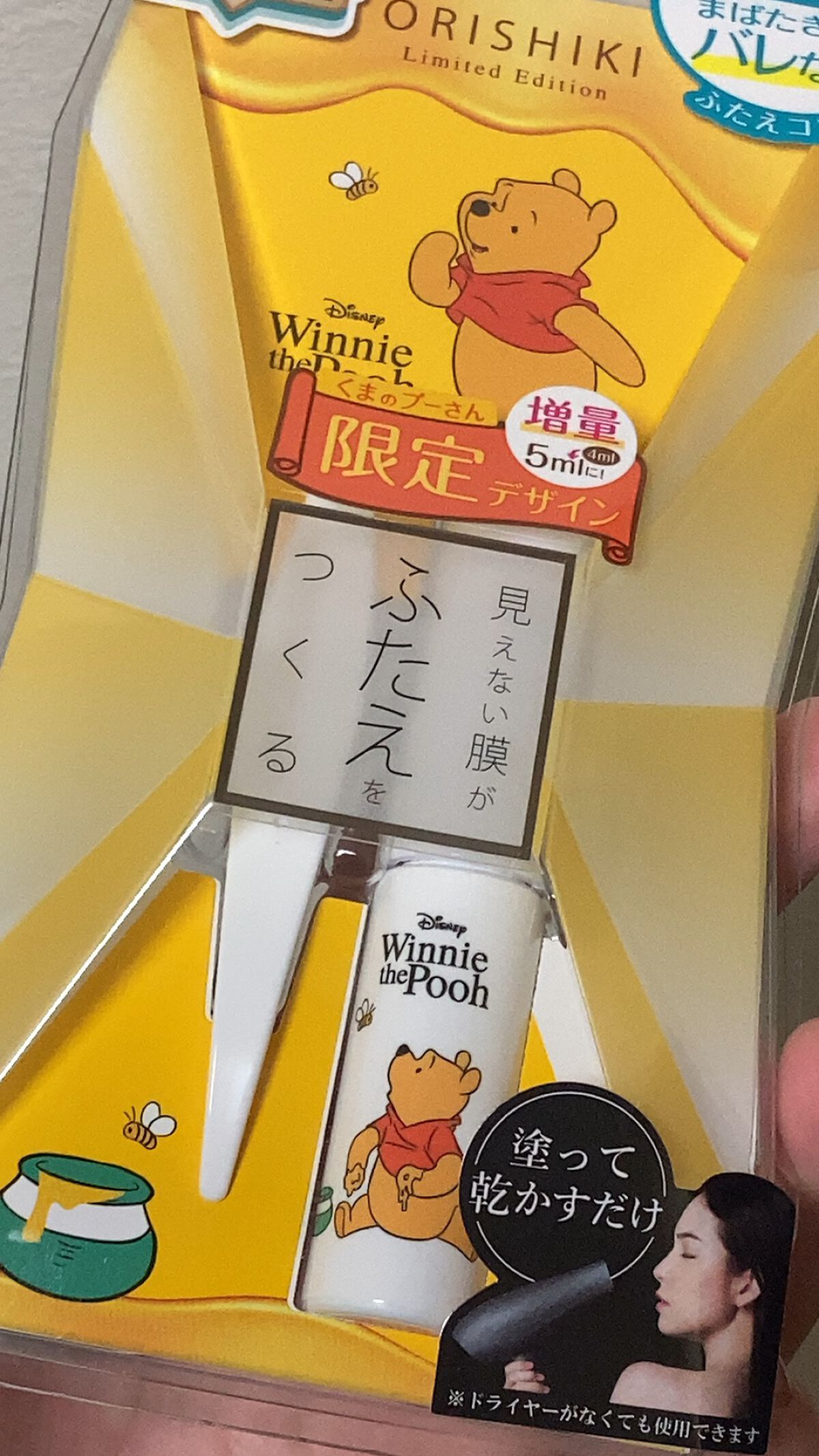 - 2020年6月3日 膜が強くなってリニューアル発売! 塗って乾かすだけのふたえ整形フィルム。見えない膜がふたえをつくり、自然なふたえが完成します。非接着タイプでまぶたを貼り付けないので、目を閉じても自然な仕上がり。まばたきしてもつっぱりません。水・汗に強いウォータプルーフでクッキリふたえをキープ。うるおい成分のヒアルロン酸・コラーゲン配合。