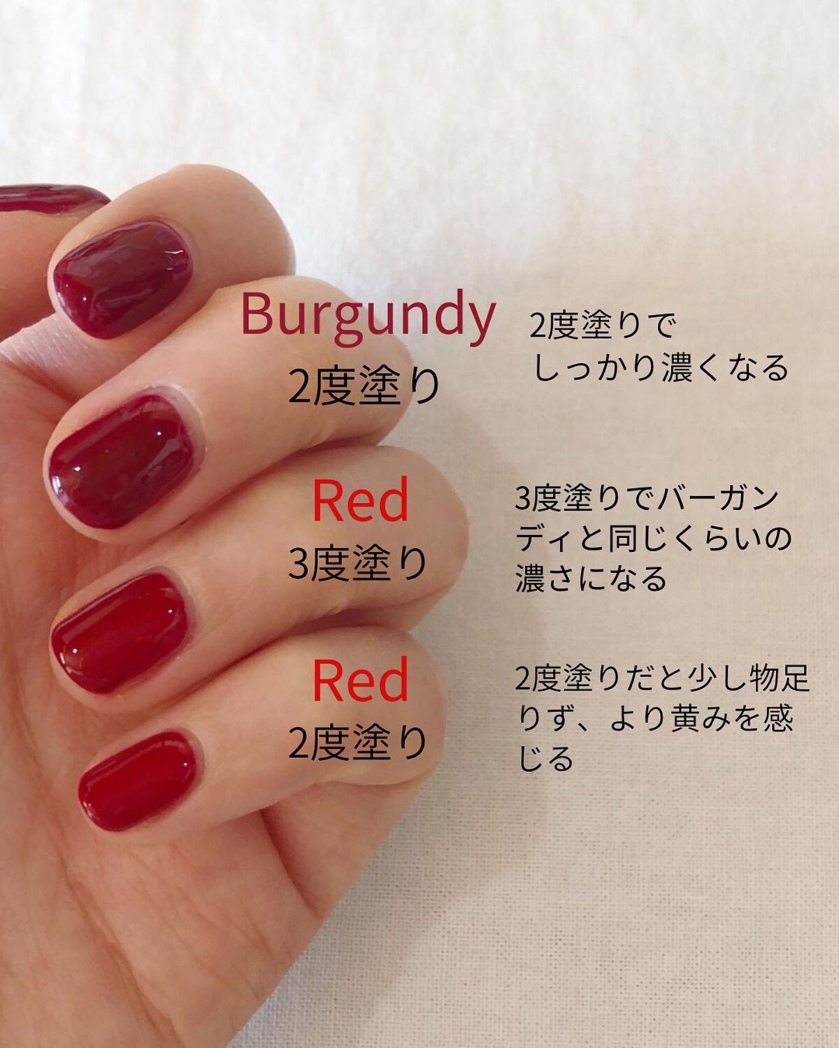 昨年購入してから秋冬に大活躍 秋冬の暗めのお洋服に映えるし、真っ白のふわふわニットにも❤️ ちょっと赤紫っぽい濃く深みのある絶妙カラー。2度塗りしてます。 写真撮っても手元が映えるからオススメ。