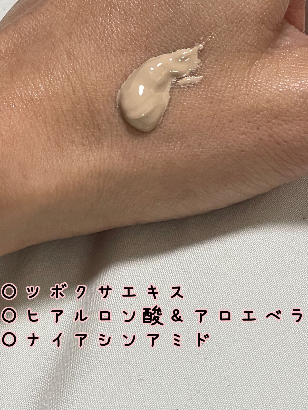伸びが良いクリーム テクスチャーは、柔らかくて塗りやすい 毛穴と赤みを自然にカバーしてくれます 保湿力も高いので、寒い季節に良いと思いました🌿 カバー力もあり、肌が綺麗に見えました ナイアシンアミド&アロエベラエキス 保湿力に優れた成分が肌に透明感とツヤを与えると同時に、スキンケアの役割も果たす