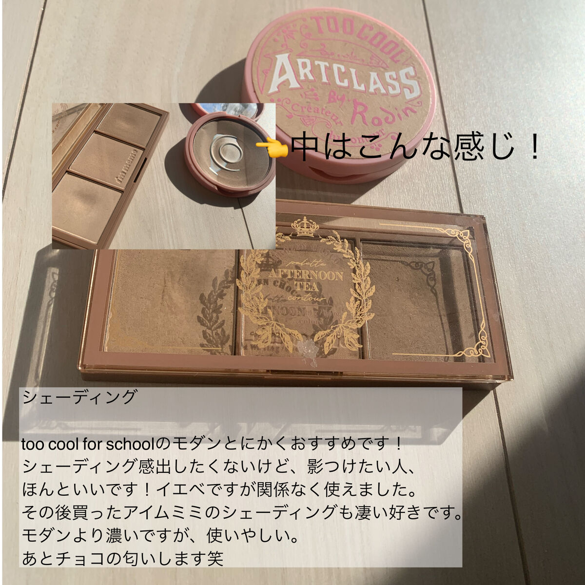 【使った商品】toocoolforschoolアートクラスバイロダンシェーディングブラシ付き【色味】02モダンマスター(ブルベ向けの色)【色もち】良き【テクスチャ】ちょっと水分感があるマットな粉質お肌にフィックスしやすい【良いところ】発色が良...