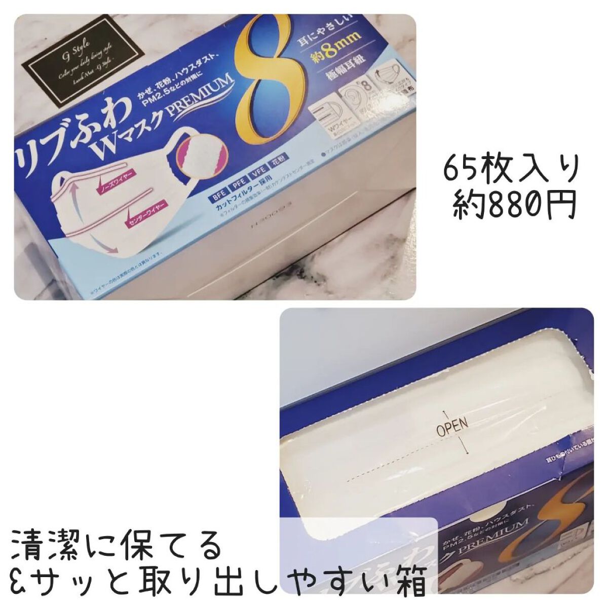 ✨✨耳が痛くなりにくい!Wワイヤーで口元も快適✨✨✔︎リブふわWマスクプレミアム リブ・ラボラトリーズ株式会社 65枚入り 880円(税抜)こちらのリブふわWマスクプレミアムは、耳紐の幅が約8mmなので耳が痛くなりにくいんです😌またノ...