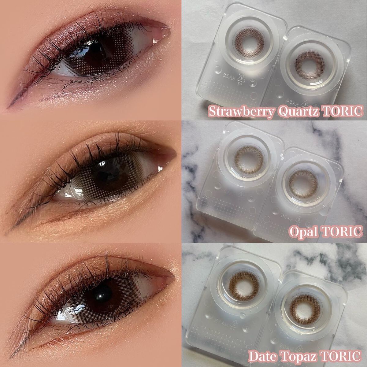 - ※2025年6月以降、商品パッケージ裏面・側面の一部表記を順次変更いたします。尚、これにかかる商品の交換・返品は承っておりません。 ■UVカット 紫外線を99%カットします。 ※UV-A波75%、UV-B波99%カット ■低含水 長時間の装用を考えた、レンズ自体に必要な水分が少ない低含水レンズです。※使用時間には個人差がありますので必ず眼科医の指導に従って下さい。 ■レンズ構造 着色剤がポリマー層によりレンズ内に包埋しています。 ■ 非イオン性レンズ 汚れが付きにくく視界をクリアに保ち、快適さが持続します。※装用感には個人差があります。 ■レンズ形状レンズ形状 フチに丸みをつけより快適な着け心地を目指しました。 Moon Melt Brown(ムーンメルトブラウン) とろける甘さのブラウンカラーに月の光を散りばめた、きらめき水光レンズ。 Cat Pearl(キャットパール) くっきり細フチでまんまるな印象の瞳♡きゅるんと子猫っぽグレーレンズ。 Jelly Quartz(ゼリークォーツ) ぼかし細フチでぷるんと輝くような瞳に、毎日使いたくなる引き算大人盛れレンズ。 カラーコンタクトレンズの不適正使用による眼障害の危険性等などがあります。 ●コンタクトレンズは高度管理医療機器です。不十分な洗浄・消毒など不適切なケアや、長時間・交換期間を超えた装用により、アレルギー性結膜炎、角膜感染症、角膜潰瘍等の重篤な眼障害が発生する危険性があります ●ご使用前に取扱説明書を確認してください 使用上の留意事項 ●眼科医院等を受診してからお求めください ●眼に異常を感じたら直ちにレンズ使用を中止し、お近くの眼科等で診察を受けてください ●医師の指示にしたがってご使用ください ●コンタクトレンズを装用する場合、自覚症状がなくても、眼科医院等での定期検査を受けてください ●レンズに不具合がある場合は使用しないでください