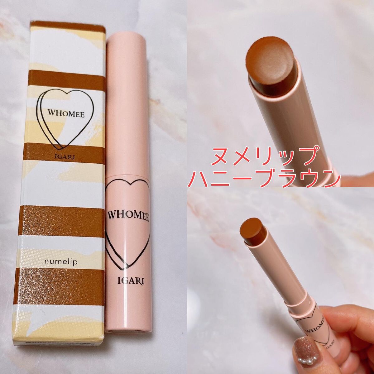 🤎WHOMEEヌメリップパッションブラウン🤎濡れたようなツヤ感が特徴のリップです💄✨唇そのものが少し色付いたような自然な仕上がりです😚なめらかで名前の通りぬめっとした質感で唇に密着してうるうるで濡れ感のある唇になります🙌🏻リップクリーム感覚で...