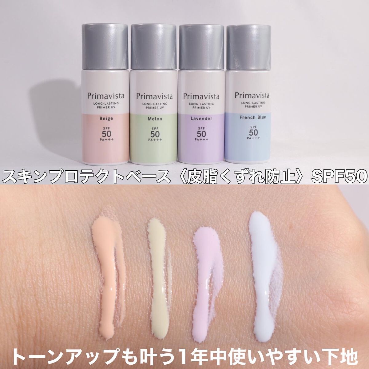 みずみずしくて伸びが良いテクスチャー。サラッと仕上がるのでベタつかない◎SPF&PAも高いのでこれからの季節にピッタリの下地です!肌悩みやなりたいイメージに合わせてカラーを選べるのが嬉しい◎最近は花粉のせいで鼻周りが赤いのでメロンをよく使って...