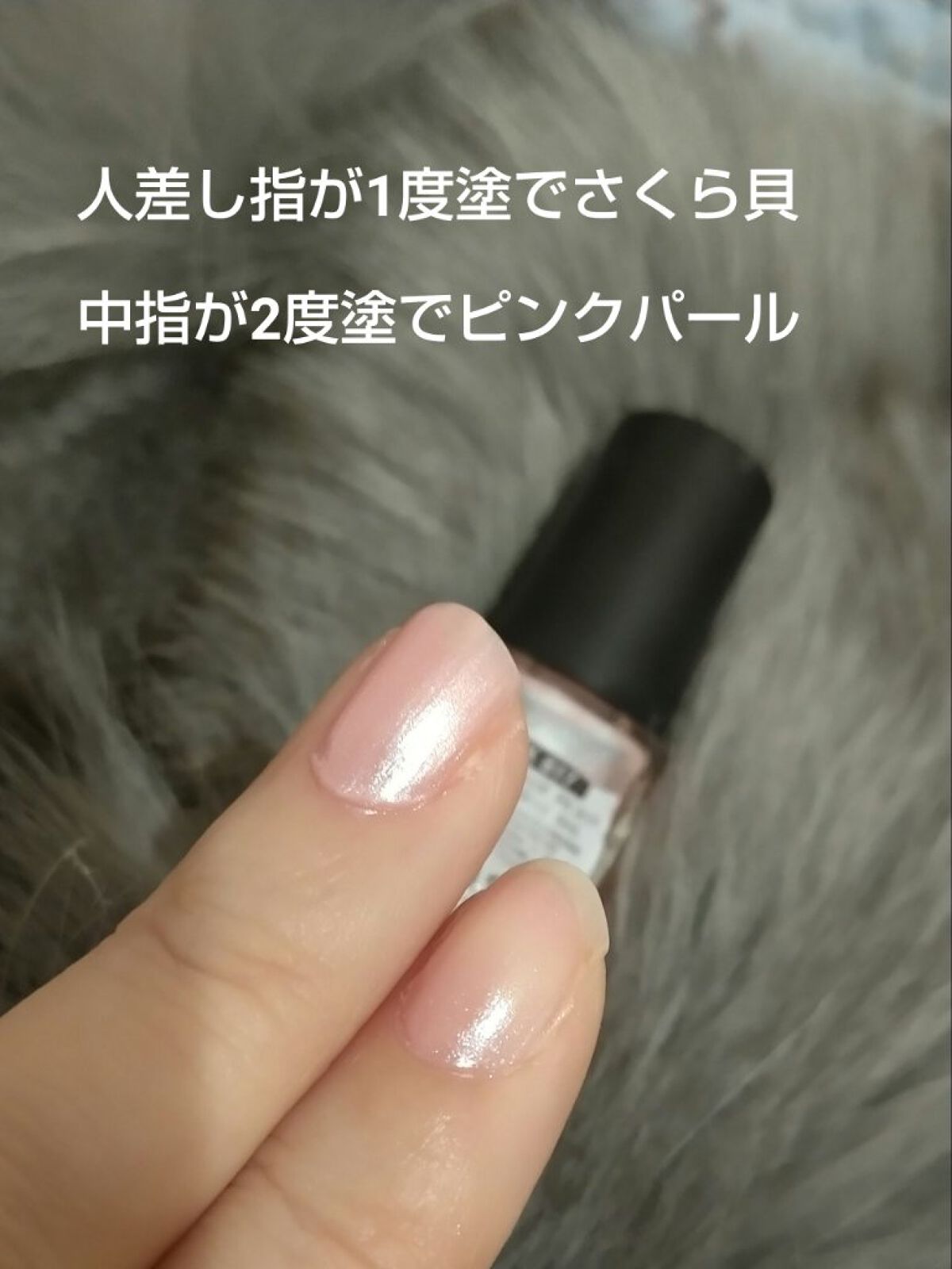 自爪がきれいになったイメージです。 良くも悪くもネイルをしてる感がない。 ネイルをしてる印象がないので大人しめでいないといけない場所、職場とかにぴったり。 塗りやすいけどムラが出来やすいので2度塗りしないとベースコート感あります。 私はデュカートの乳白色のベースコートを塗ってから塗ったら下のベースコートが目立ってしまって2度塗しました。 ベースコートは透明な方がいいです。