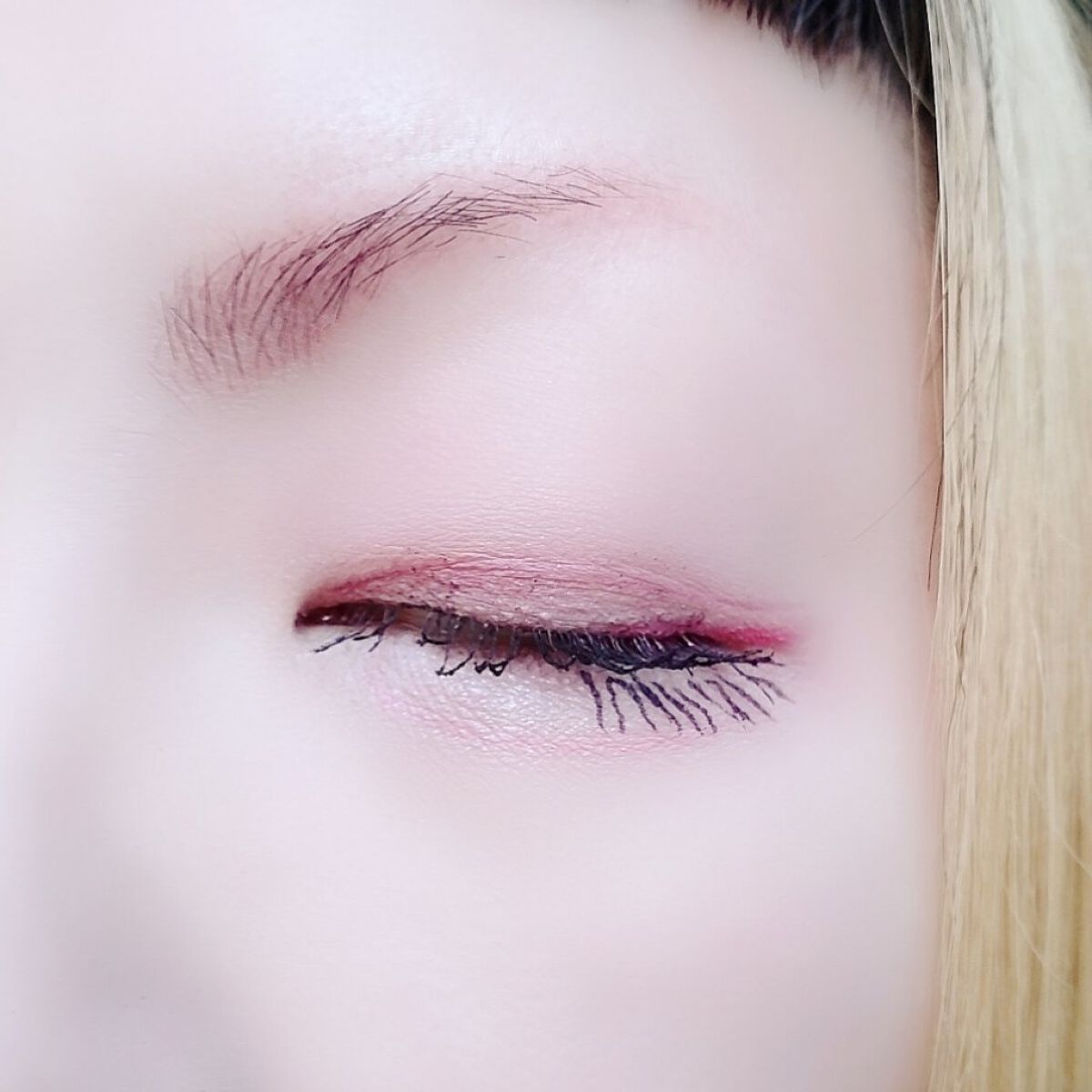 バレンタインデーということでちょこっとブラウンを入れたピンクmake ワンダー スウィート アイシャドウの中段左を上瞼へ。下段右を上下目尻へ。 使ったカラコンはMORAK新色のピンクボム。
