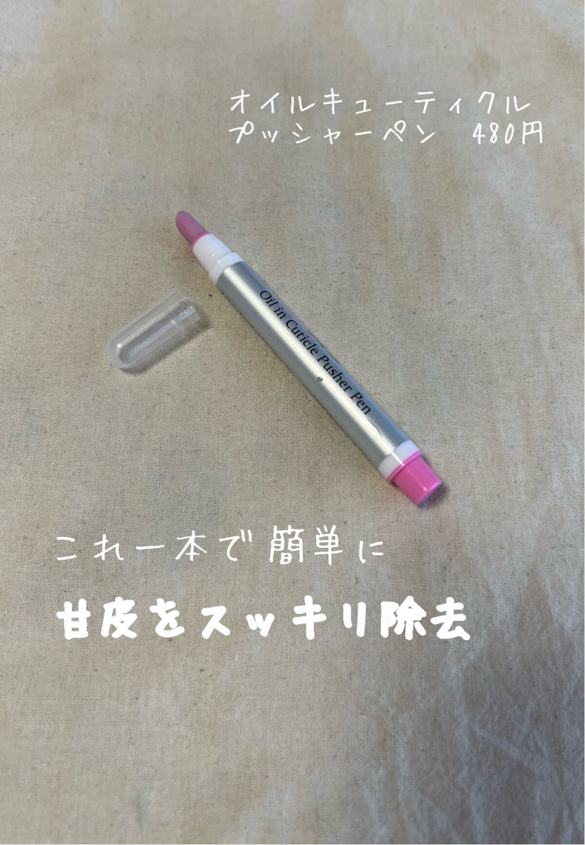 ネイルケア💅🏻で、甘皮処理が簡単に出来そうなので買ってみた✨ビューティーワールドオイルインキューティクルプッシャーペン¥605〜斜めにカットしてあるから、爪の根元にフィットして、使いやすかった!じんわりとオイルが染み出てくる感じです。甘皮部分...
