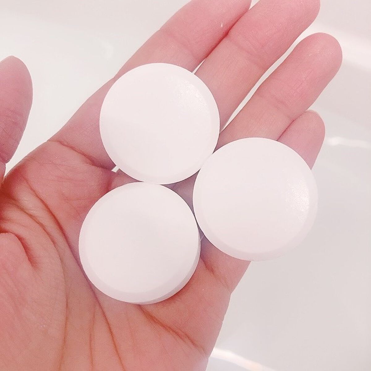ケミカルを一切使わない入浴剤でケアしませんか🥹?💓✨ 主な成分は重曹とクエン酸とビタミンCだけなので口に入れても問題なし! 温浴効果で血流を促進し、体を芯から温め、湯上り後も温まり感が持続するそう🥲💕